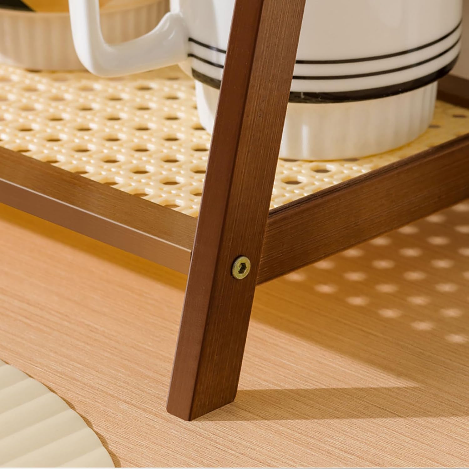 KISKIS Cup Mug Holder Wooden & bamboo look, Non-Slip Coffee Cup Rack Organizer, Bathroom Stand Storage Shelf with 2 Tier, Kitchen Countertop Spice Rack