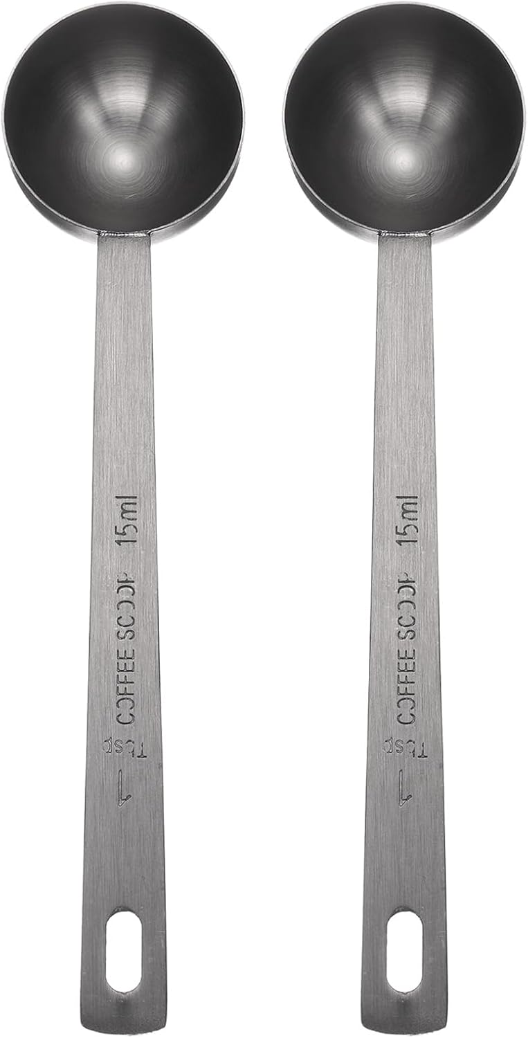 HARFINGTON 2pcs Coffee Scoop Spoon 1tbsp (3tsp, 15ml) 304 Stainless Steel Long Handle Teaspoon/Tablespoon Measuring Spoons Scoops for Tea Sugar Kitchen, Black
