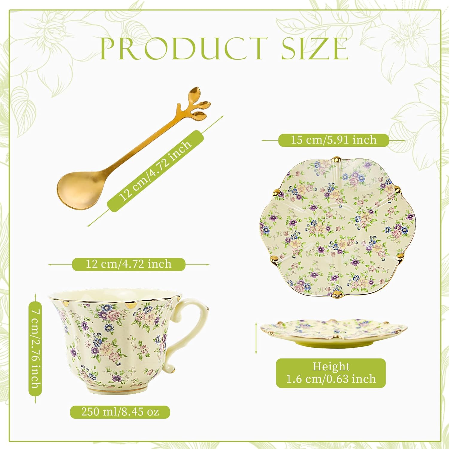 - Comes with sturdy carton package, including a cup, saucer and spoon
