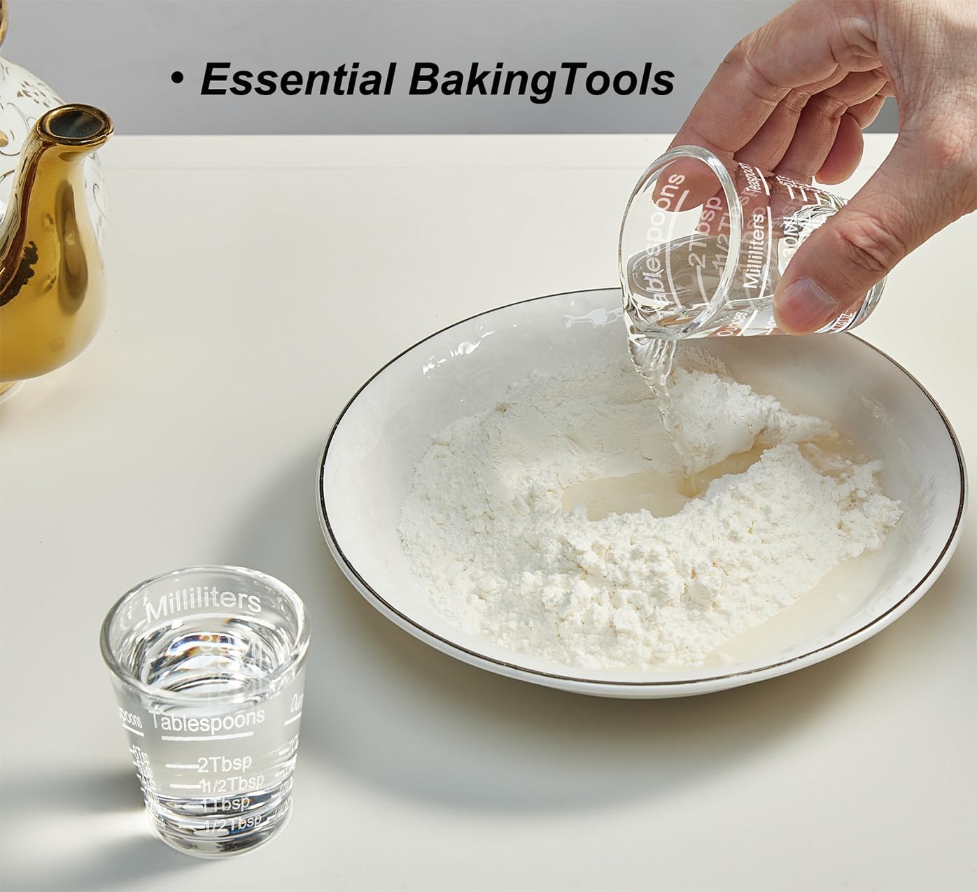 - 2 PACK MEASURING CUPS: You will get 2 piece set of measuring shot glass with etching scale that are perfect for baking, cooking, mixing and more. Glass measuring cup Height: 6 cm/ 2.3 inches,Caliber: 5 cm/ 2 inches; Feet Diameter: 3.5 cm/ 1.3 inches
