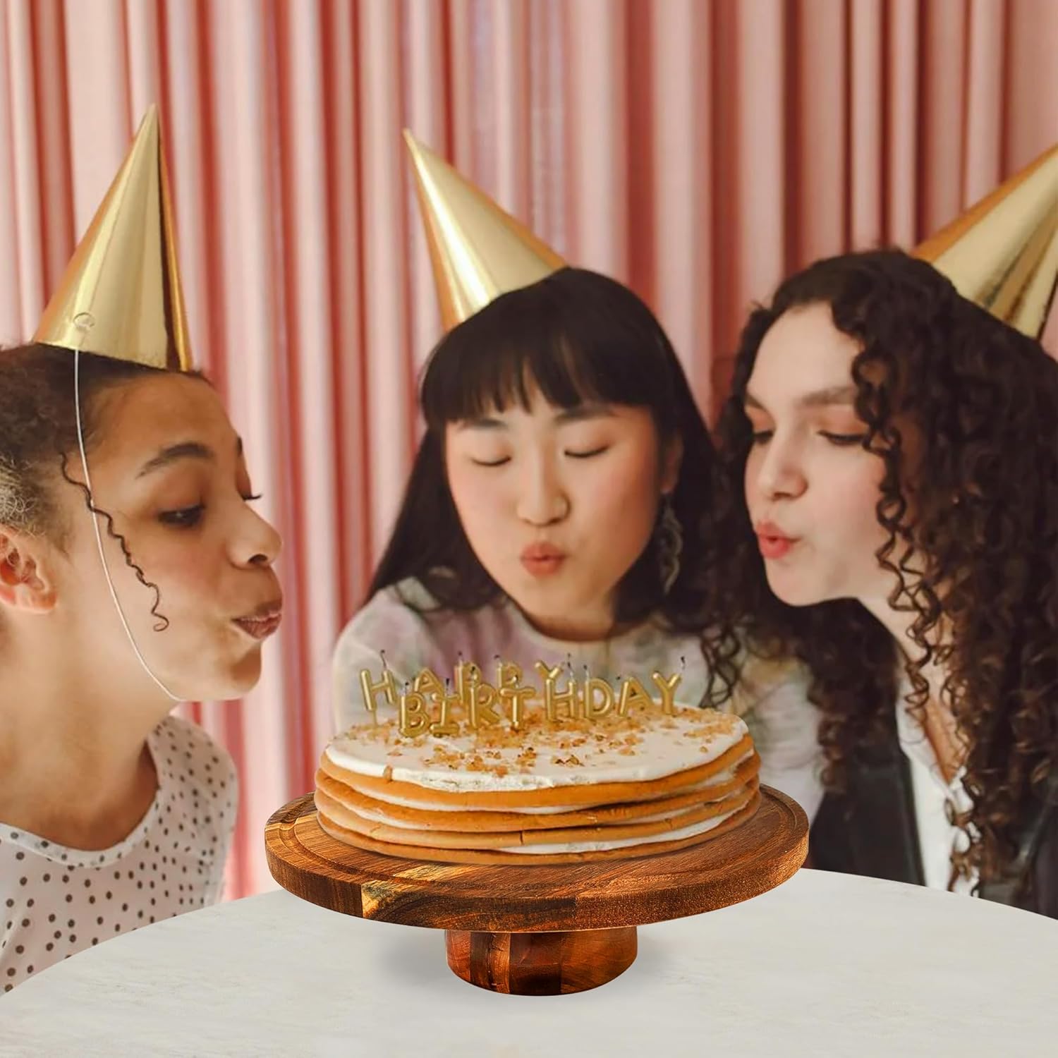 - 【Durable & Stylish Acacia Wood】Cake stand with lid is made from premium acacia wood, resistant to bending and cracking. Sourced from nature, each piece is unique in color and grain.The natural wood grain adds a touch of rustic charm to your kitchen or dining table. Paired with acacia wood cake plate, this cake pedestal stand with cover elevates birthdays,wedding, parties, and dessert tables with its natural wood texture and seamless 2-in-1 design.Note: Wood material is not dishwasher safe.