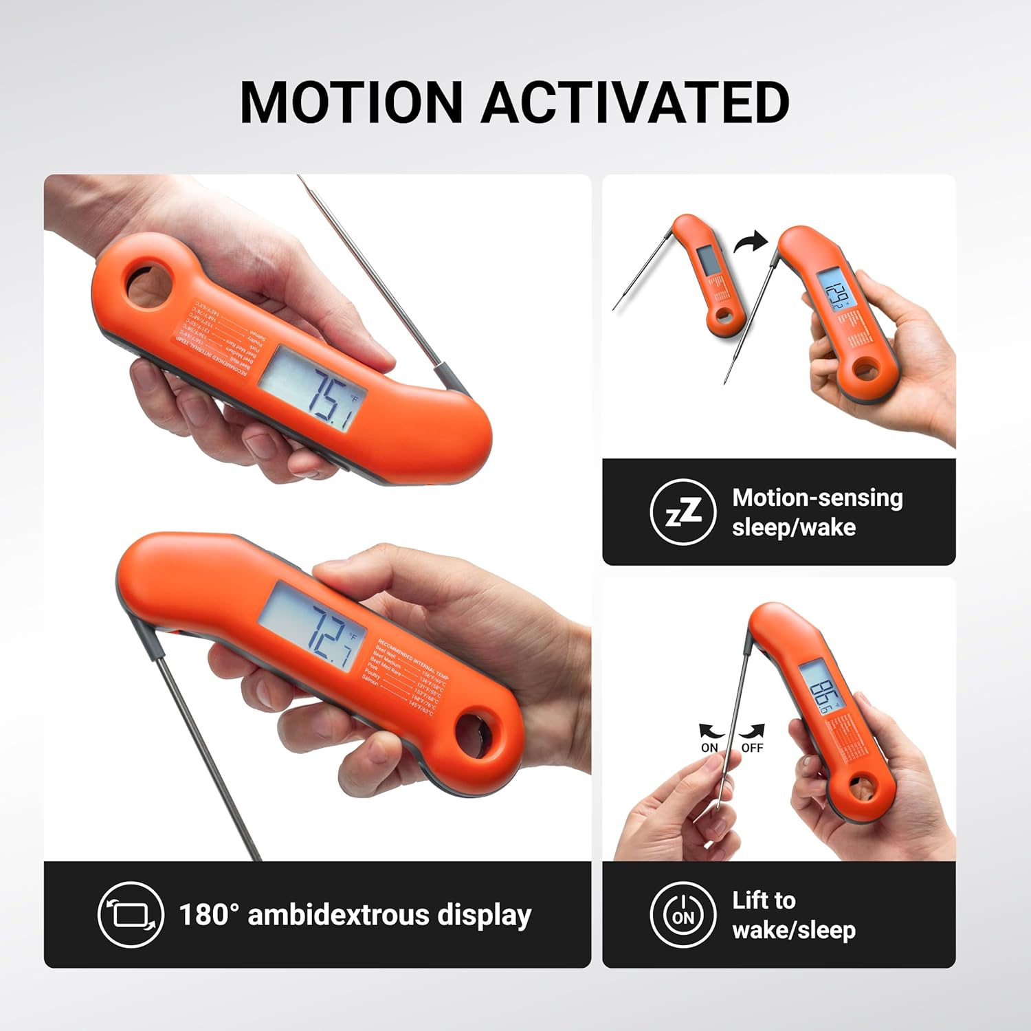 Professional Meat Thermometer Digital, Ultra-Fast 0.5 Sec Instant Read, NIST Certified ±0.5°F Accuracy, 100% Waterproof, Auto-Rotating Backlit Display, Lift-to-Wake, for BBQ/Candy, Orange&Gray