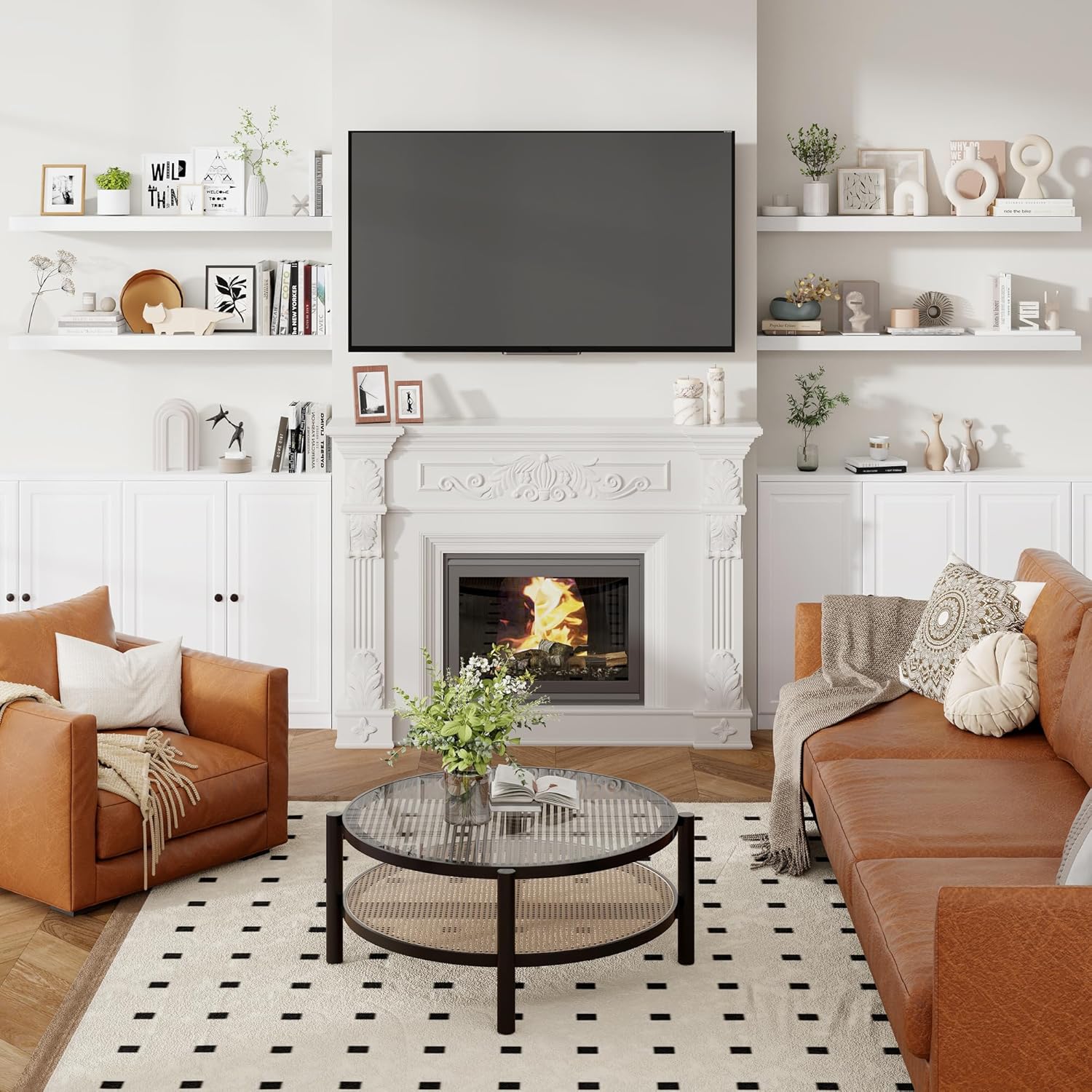 Heimlove 48 Inch Floating Shelves for Wall 8 Inch Deep White Shelves Set of 2,Wall Mounted Rustic Wood Long Floating Shelf,Large Display & Storage Shelf with Invisible Brackets