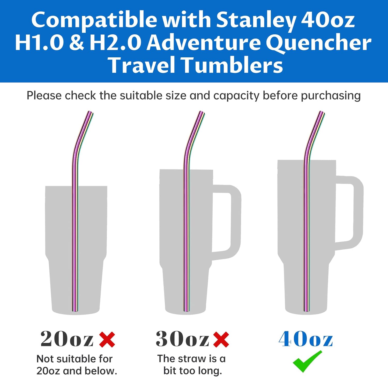 - Perfect Fit for 40oz Stanley Tumblers: Sized at 12 inches long and 0.35 inches wide, these colorful metal straws are tailor-made for Stanley 40oz Adventure Quencher Travel Tumblers. Ideal for sipping smoothies, milkshakes, fruit teas, and more.