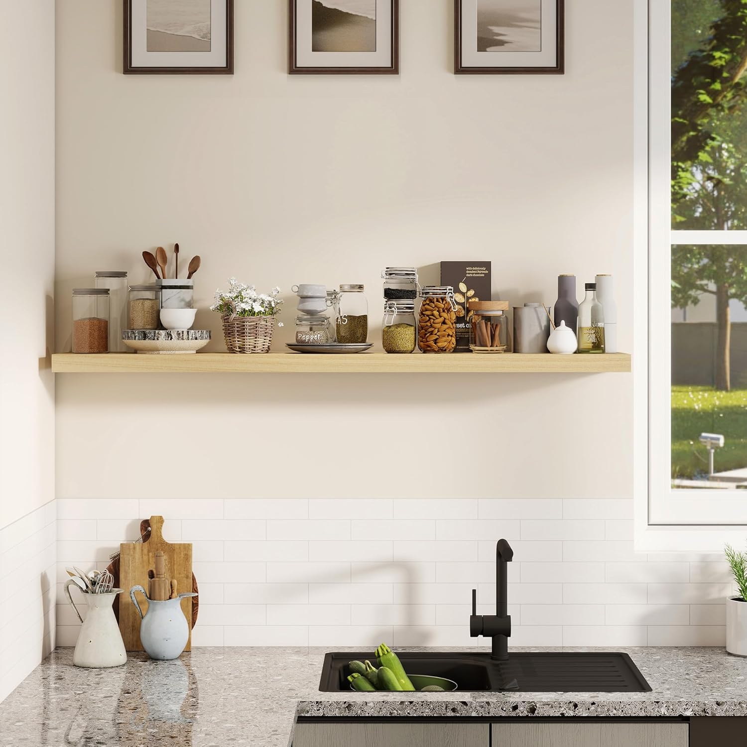 Fun Memories Rustic Real Wood Floating Shelves, 8 Inch Deep Floating Shelf Wall Mounted, 48" W x 8" D Wall Shelves Storage Shelves for Living Room, Bedroom, Bathroom, Burlywood, Set of 1