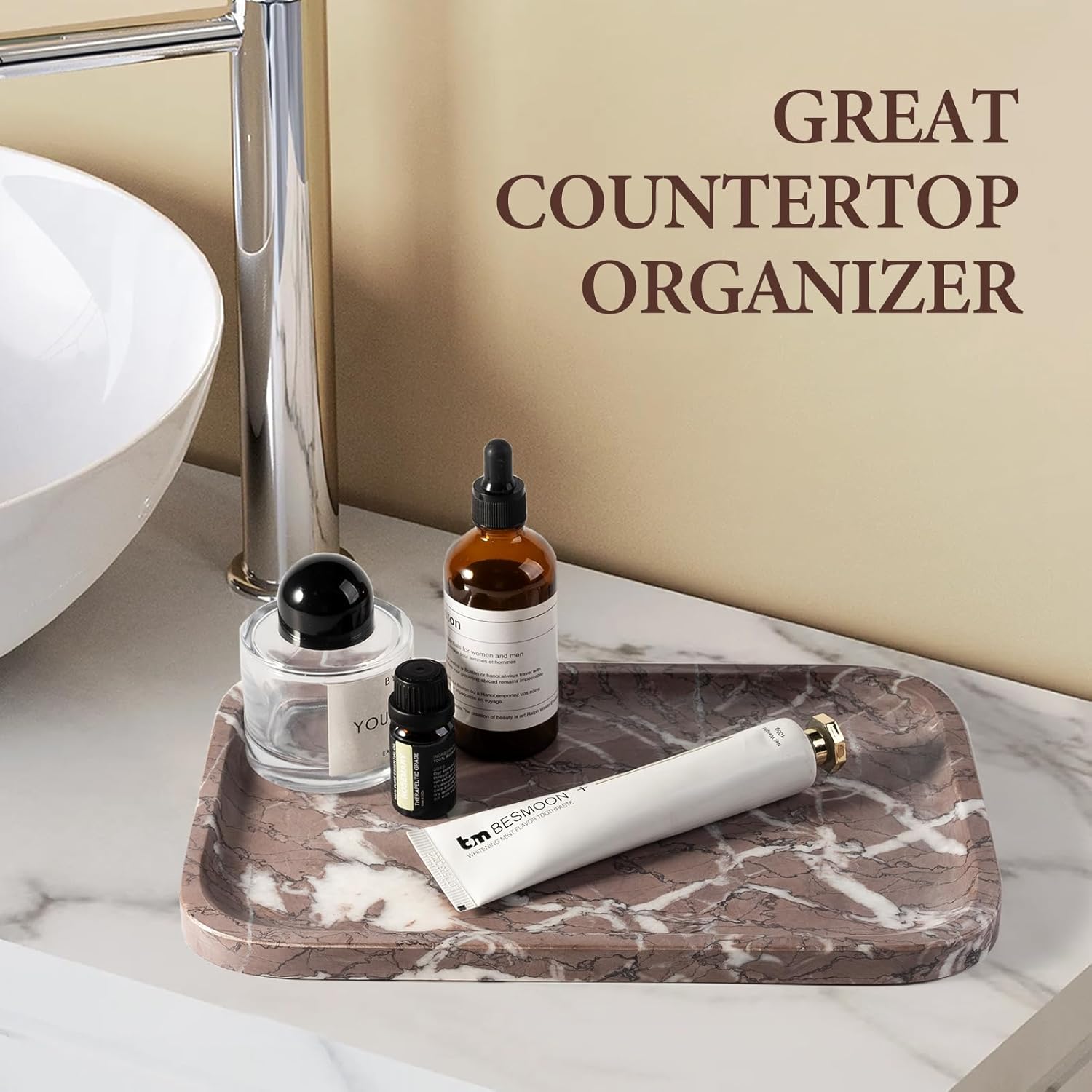- 【Multi Purpose】This organizer tray can be used as a jewelry tray, perfume tray, cosmetic tray, key watch tray, or even a coffee tray. Whether kitchen, bedroom or living room counter, table or nightstand, this stone vanity tray fits in perfectly. The slightly raised edges of the stone tray can prevent items from falling