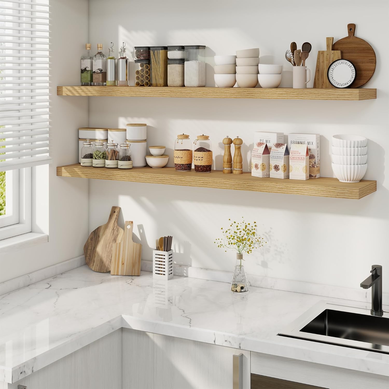 - Effortless Installation: Upgraded hidden brackets ensure a sleek, gap-free look with included tools (magnetic level, anchors, screws) for quick mounting in under 5 minutes. Combines rustic charm with modern stability