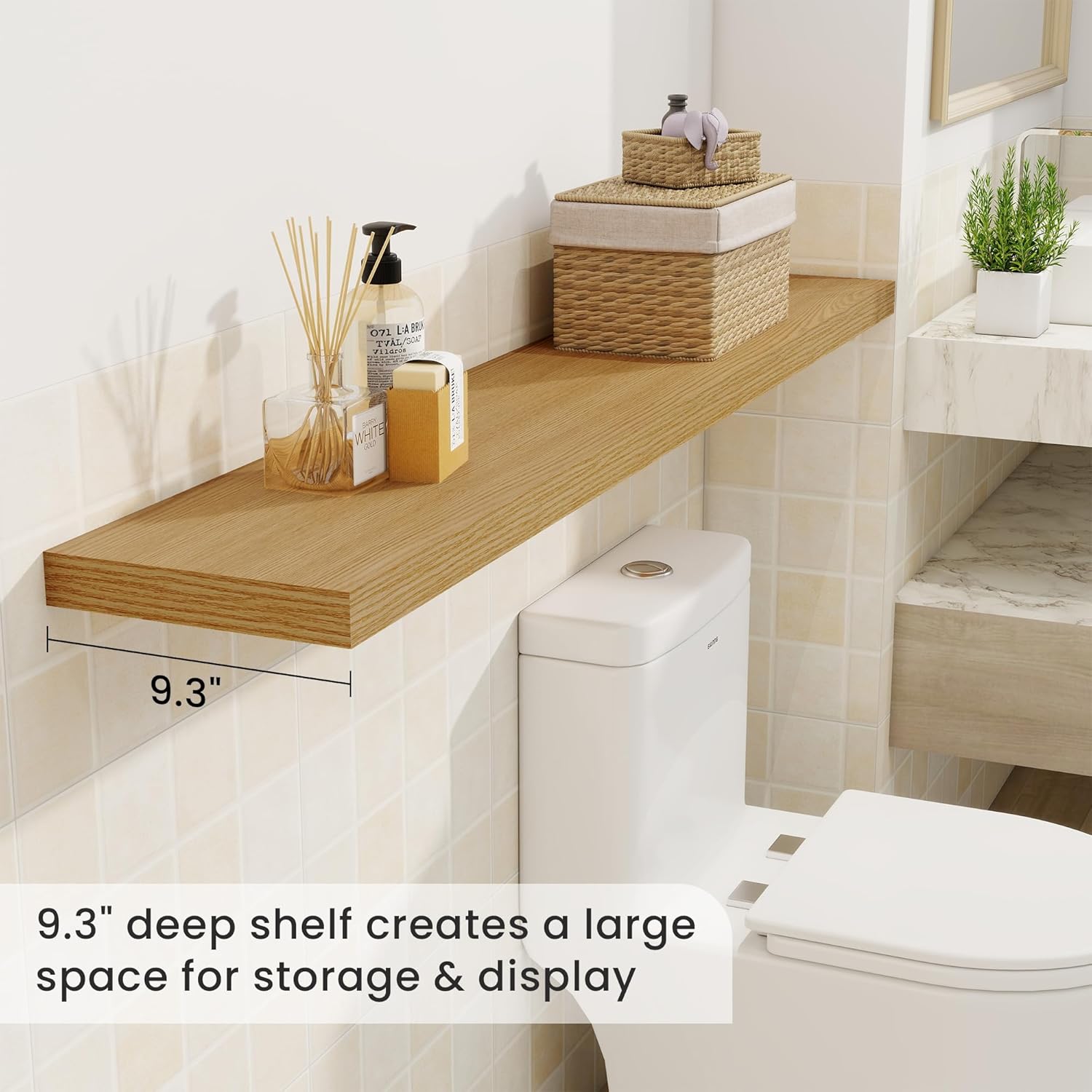 - Timeless Design for Any Room: Elevate your décor effortlessly! The classic retro texture of these floating shelves complements bathroom, bedroom, kitchen, living room or even office space. Neutral tones blend with existing furniture, adding warmth without clashing