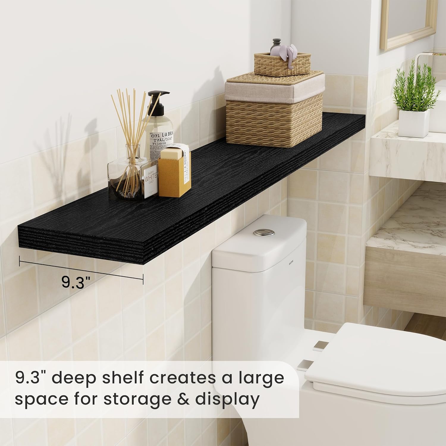 Fun Memories 55 Inch Fireplace Mantel Shelf -Long Floating Shelves, Deep Wall Mounted Farmhouse Display Shelves with Invisible Heavy Duty Metal Bracket, Black, 2 Pack