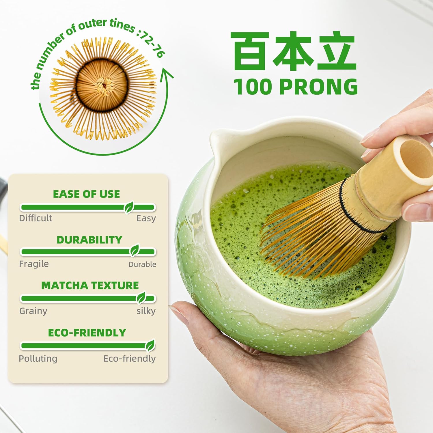 - HIGH SAFETY & QUALITY: Our Handcraft Matcha Whisk, About 100 Prongs(百本立),100% Crafted From High Quality Bamboo With A Vegetable Oil Finish To Enhance Its Durability. Additionally, Our Ceramic Bowl Has Lead-free And Mercury-free Test Reports.food-grade And Eco-friendly