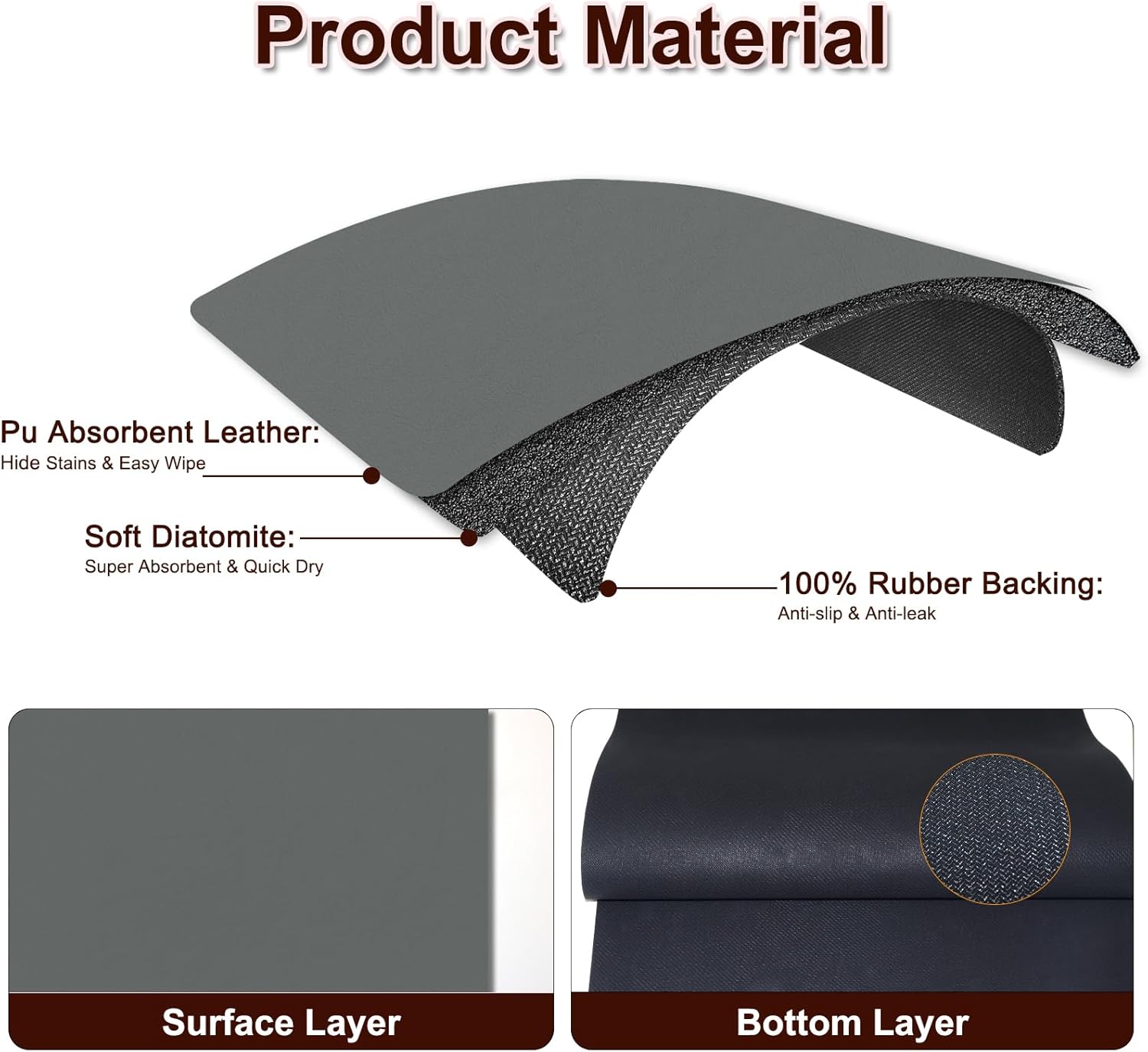 BLESWIN Dish Drying Mat for Kitchen, 15.7'' x 23.6'' Coffee Bar Mat for Countertops, Coffee Station Matt with Non-slip Rubber Backed, Absorbent Dish Dying Mat for Kitchen Counter, Gray