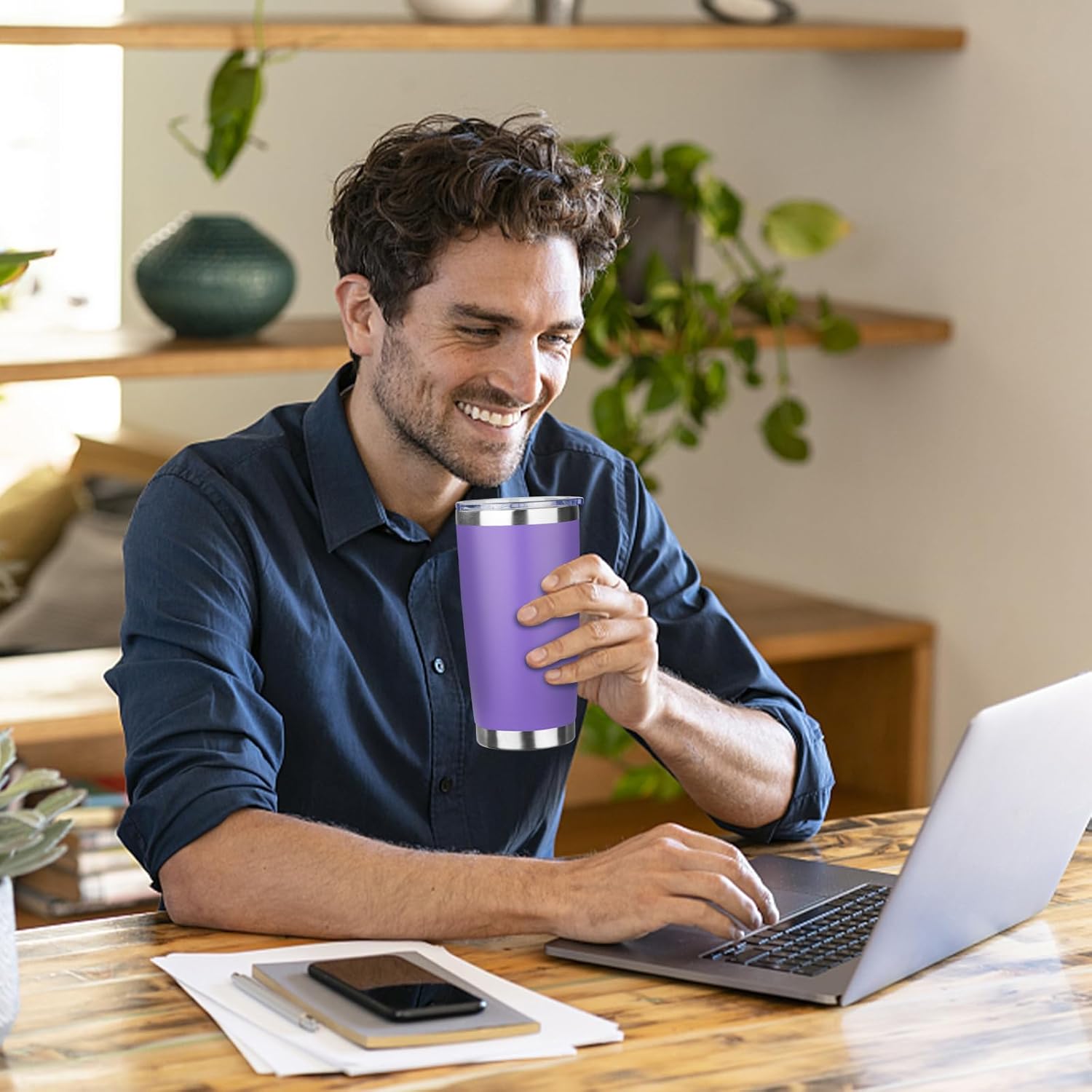 20oz Tumbler Bulk with Lid and Straw, Stainless Steel Double Wall Vacuum Insulated Travel Mug, Powder Coated Coffee Cups for Hot and Cold Drinks,Funny Gifts for Women Men(Purple,1)