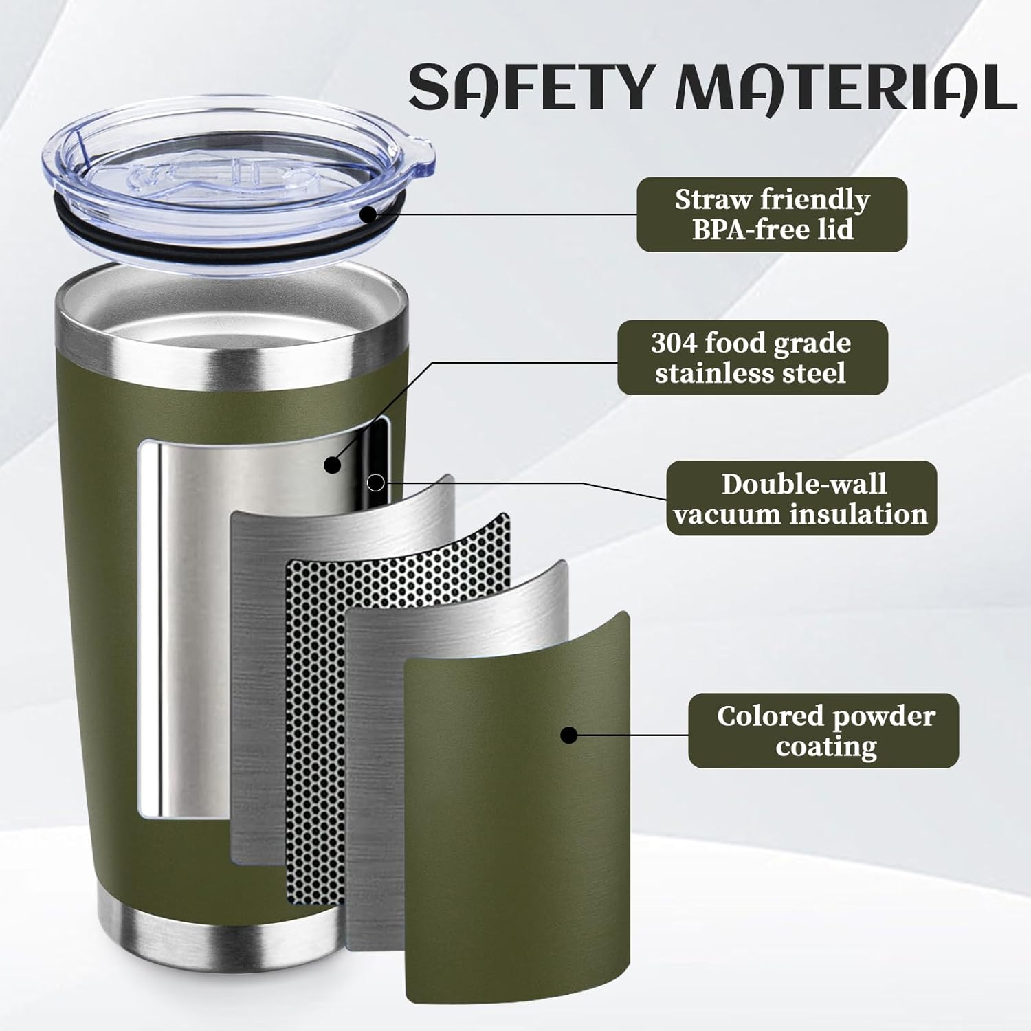 - Premium Material: 20oz Insulated tumblers are made of 304 food grade stainless steel with powder coating that won't fade, peel,and also provide additional grip to the exterior. Do not recommend washing in the dishwasher