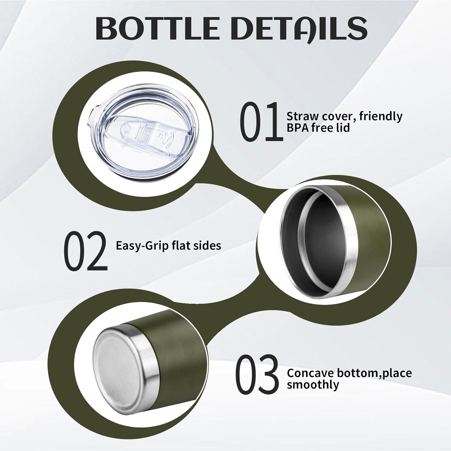 - BPA Free Lid: Stainless steel tumbler set with lid and an opening for drinking, be aware of how hot your coffee is before taking a sip. Under normal temperature, the insulated coffee cup keep your water hot for three hours and cold for nine hours
