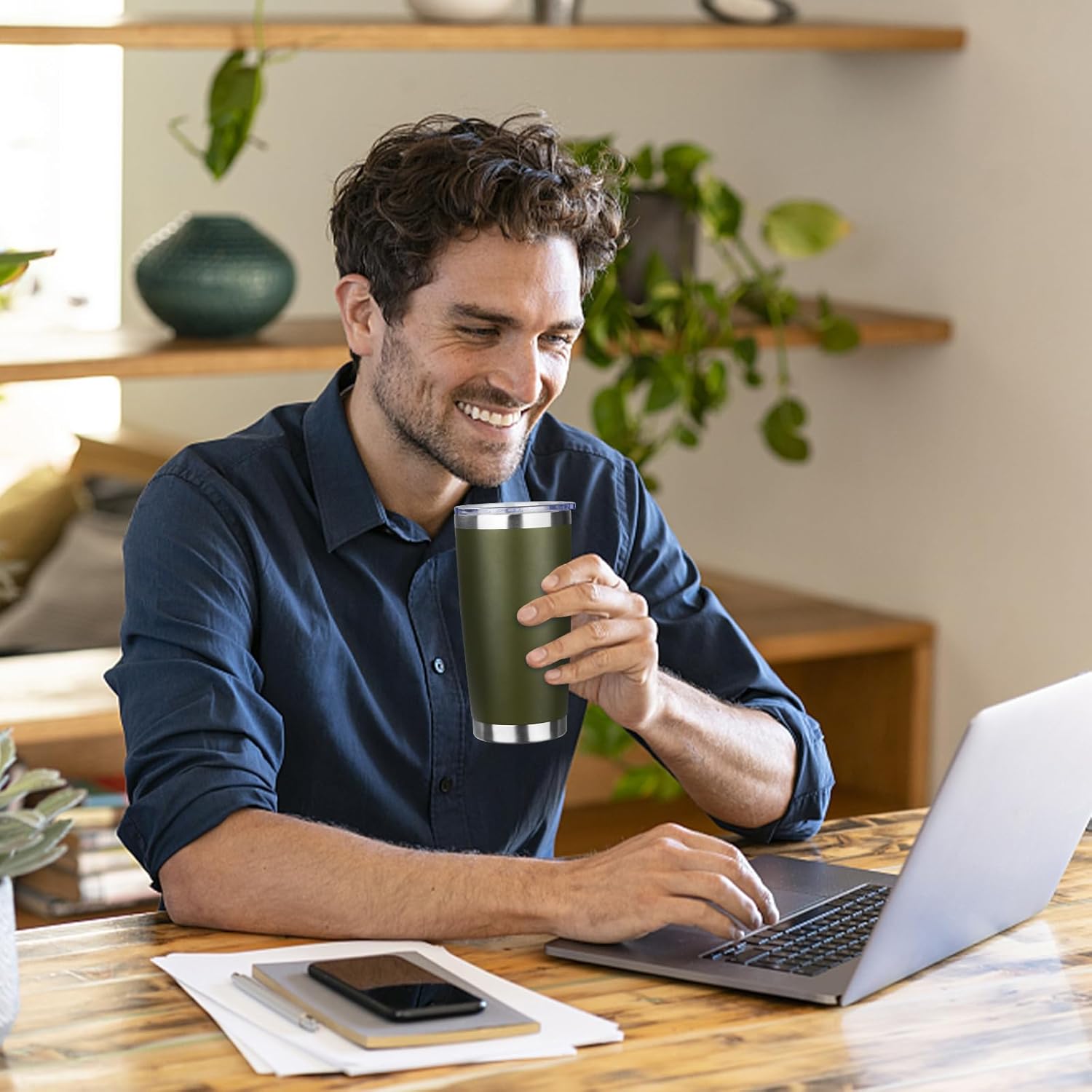 20oz Tumbler Bulk with Lid and Straw, Stainless Steel Double Wall Vacuum Insulated Travel Mug, Powder Coated Coffee Cups for Hot and Cold Drinks,Funny Gifts for Women Men(Navy Green,4)