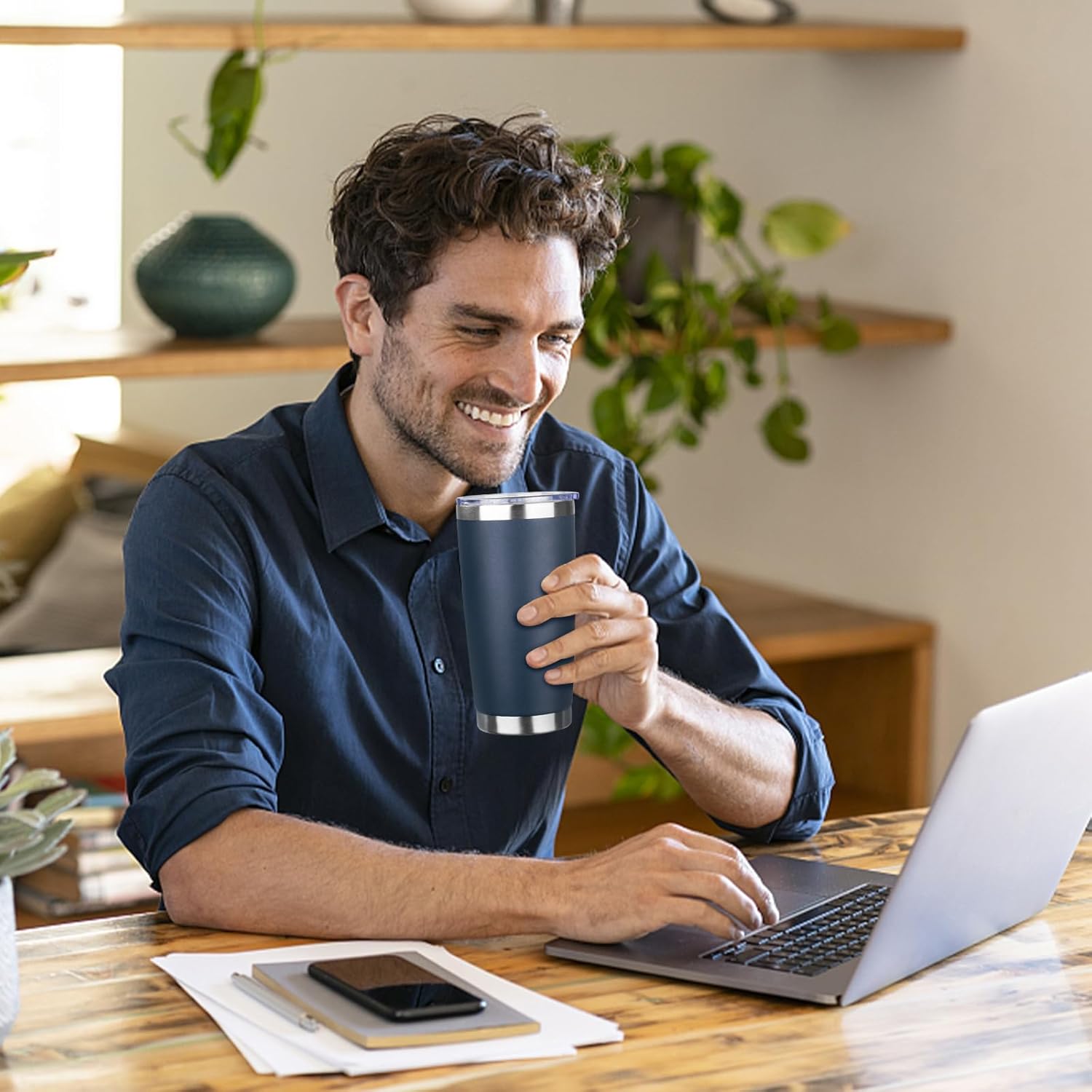 20oz Tumbler Bulk with Lid and Straw, Stainless Steel Double Wall Vacuum Insulated Travel Mug, Powder Coated Coffee Cups for Hot and Cold Drinks,Funny Gifts for Women Men(Navy Blue,6)