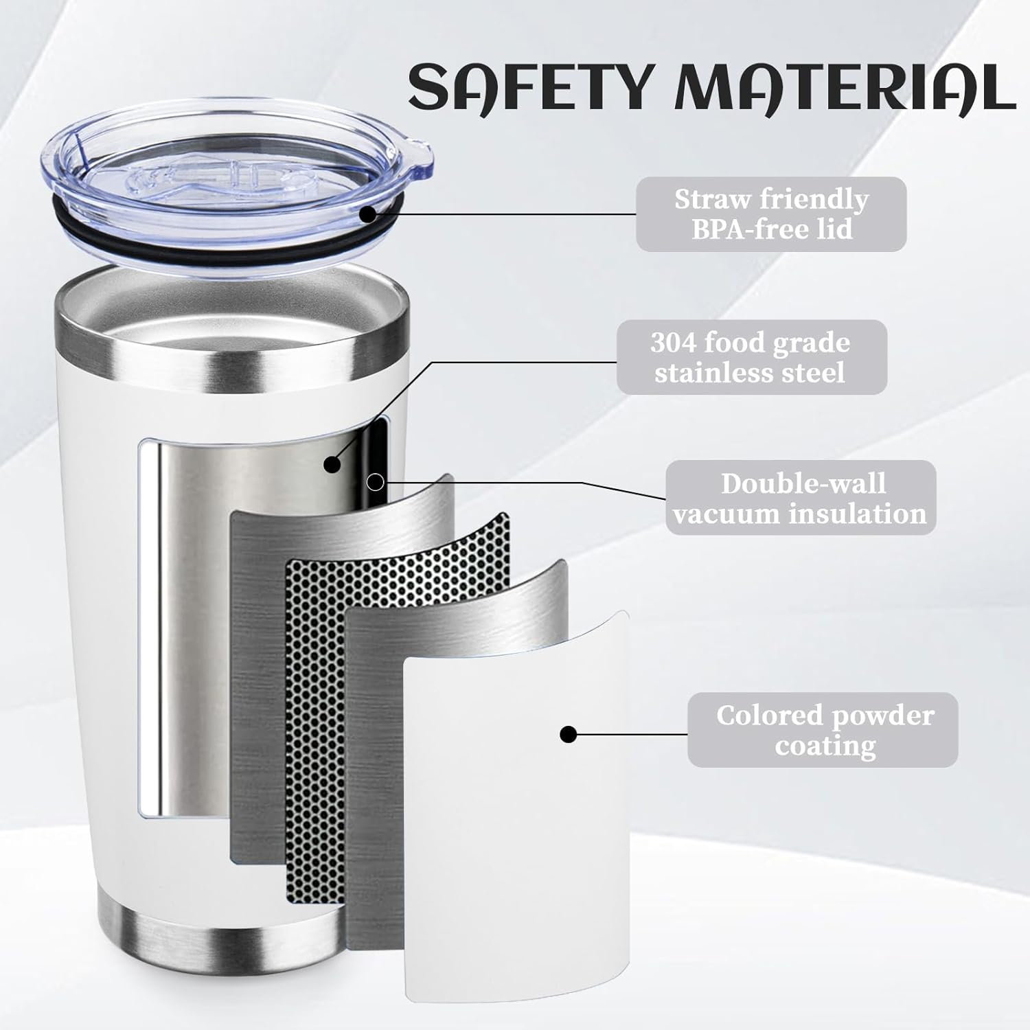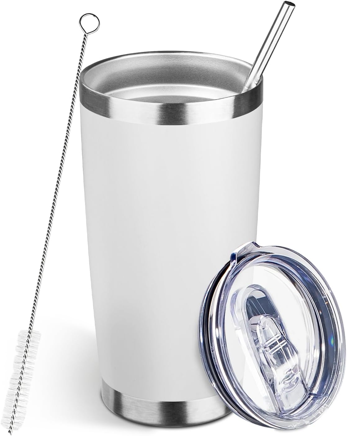 20oz Tumbler Bulk with Lid and Straw, Stainless Steel Double Wall Vacuum Insulated Travel Mug, Powder Coated Coffee Cups for Hot and Cold Drinks,Funny Gifts for Women Men(White,1)