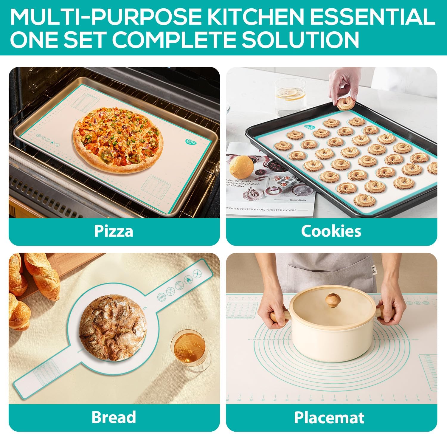 - VERSATILE SILICONE BAKING MAT:Perfect for rolling out dough, kneading pastry, and using as a non stick liner on your baking sheet, this silicone mat is a multifunctional tool for all your baking needs.