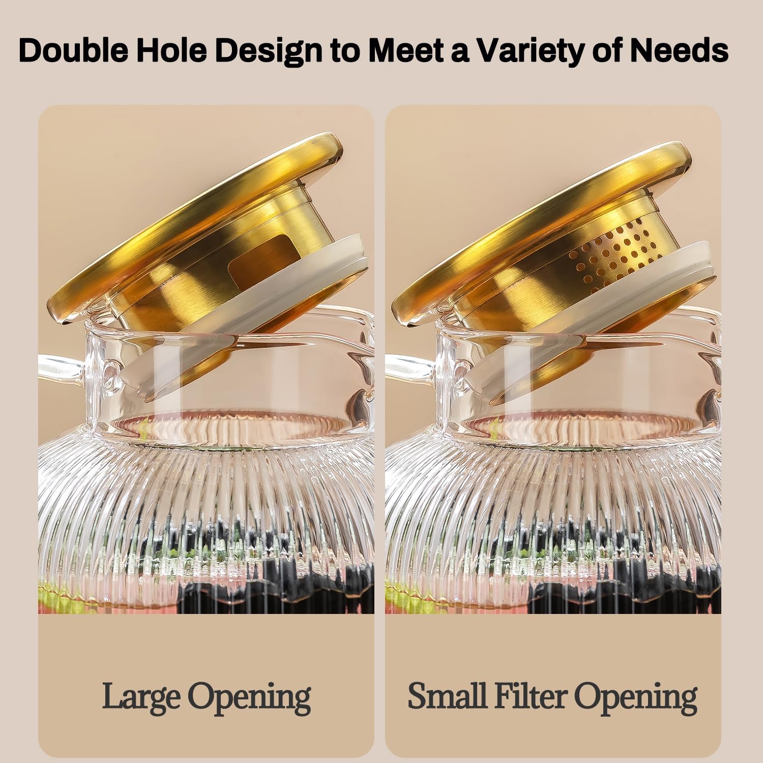 - 【100% STAINLESS STEEL LID WITH TWO OPENINGS】The lid is made of 100% stainless steel, so whether you use it for three or five years, you don't have to worry about the rust of the lid and the lid has two openings, which can be turned to pour water or the other side to filter beverages. The soft silicone seal keeps the lid firmly on the lid to prevent leakage.