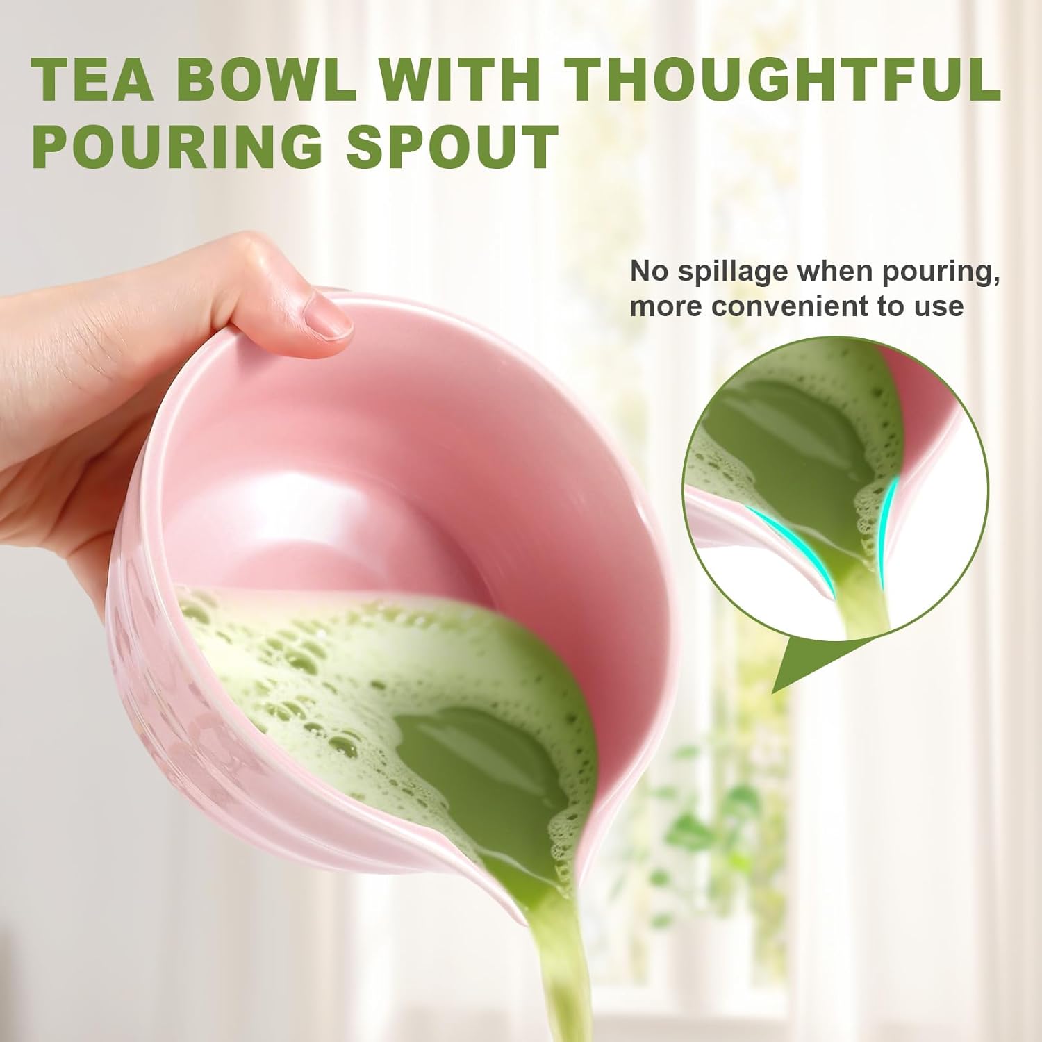 - Premium Easy-Clean Ceramic Matcha Bowl: Our matcha bowl features thickened ceramic walls with a beautifully glazed, rounded interior, ensuring zero breakage and nonstick performance. The pouring spout design prevents spills and the bowl is microwave and dishwasher safe. Enjoy effortless cleaning, no more tea stains or residue.