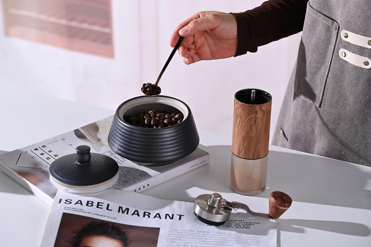 Retro Kitchen Canisters Ceramic Food Storage Jar Roud Shape with Silicone Airtight Lid for Tea, Coffee, Nuts, Herb, Spice, Sugar (Low Black)