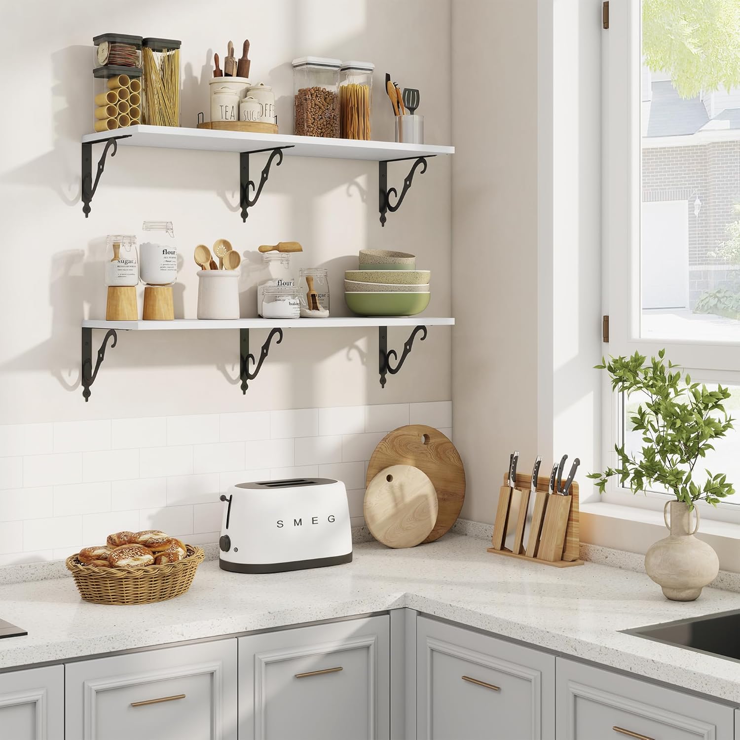 - Suitable for All Occasions: The floating shelves are designed for storage and decoration, wall-mounted shelves are ideal accent for any room - from keeping seasoning, plates, spices bottles in a kitchen area to holding books, collection, globe, photo frame, small plants and trophies in a living room, office, study or organizing hand towels and toiletries in a bathroom