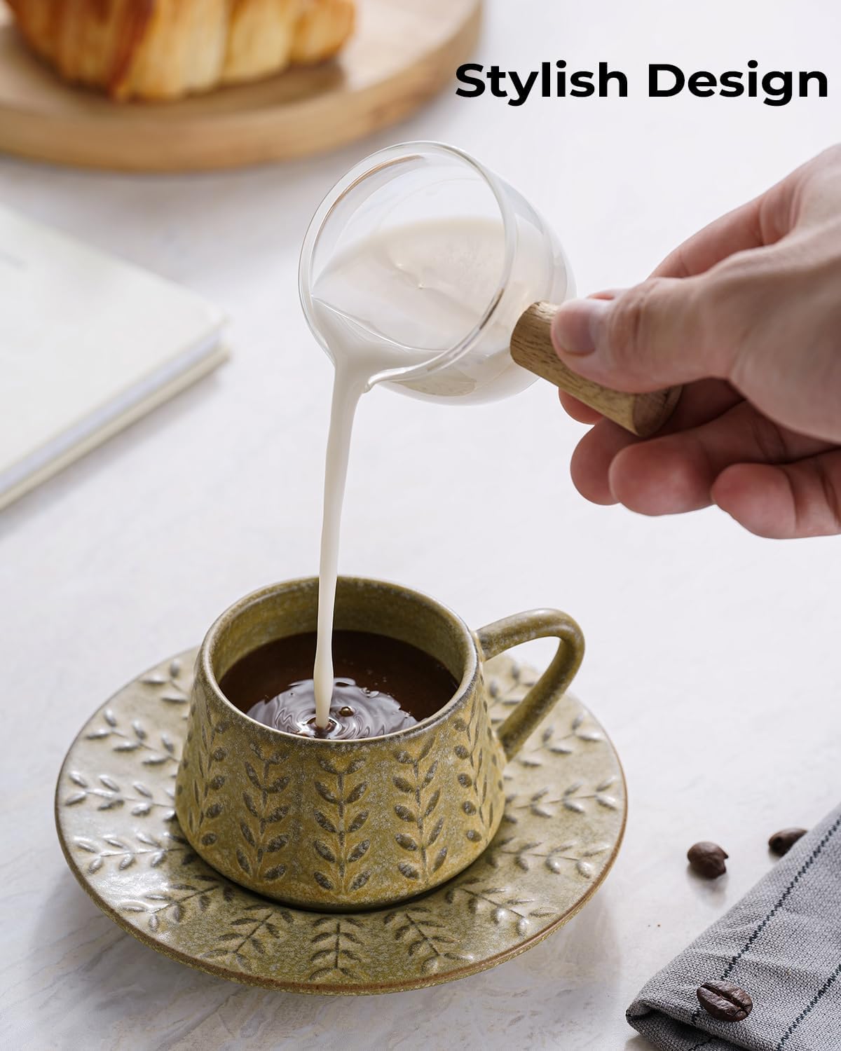 - Ceramic Material: Crafted from premium ceramic with a smooth, glossy, and refined finish, this cappuccino cups set is built to last and is dishwasher safe, ensuring long-term use without losing its beauty