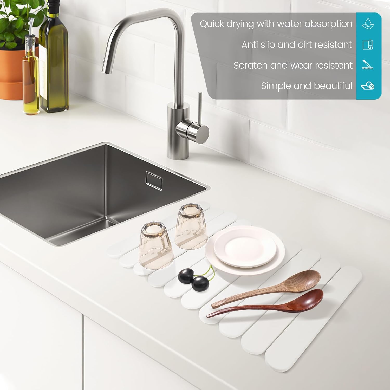 - Versatile Usage: This multi-purpose drying mat is perfect for placing washed dishes, cups, and utensils on your kitchen counter, and serves as an ideal heat-proof mat, bath mat, plant saucer, or pet feeding mat, catering to various household needs