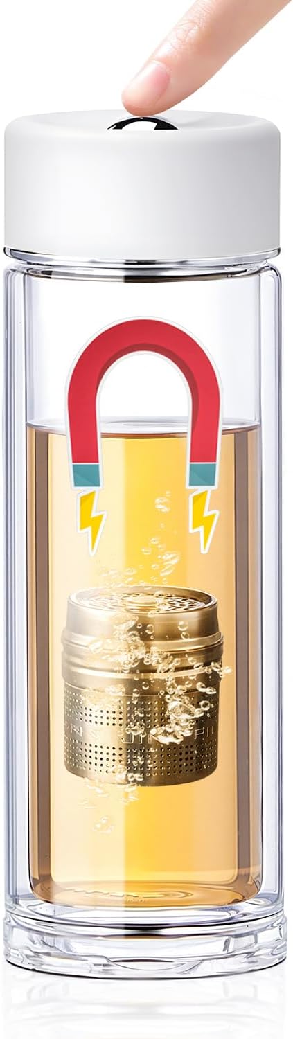 - Patented Magnetic Bead-Controlled Tea Steeper — Flip the stainless steel bead to release tea infuser into water. To stop brewing, invert tea cup - infuser magnetically reattaches to lid. Take full control of your tea strength.