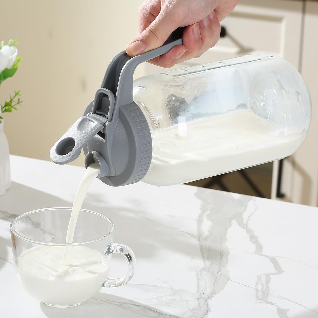 Glass Tea Pitcher with Wide Mouth Airtight Lid Leak Proof Fridge Container with Gray Lid Mason Jar for Water, Tea,Juice and Drinks (1 Pack-64OZ)