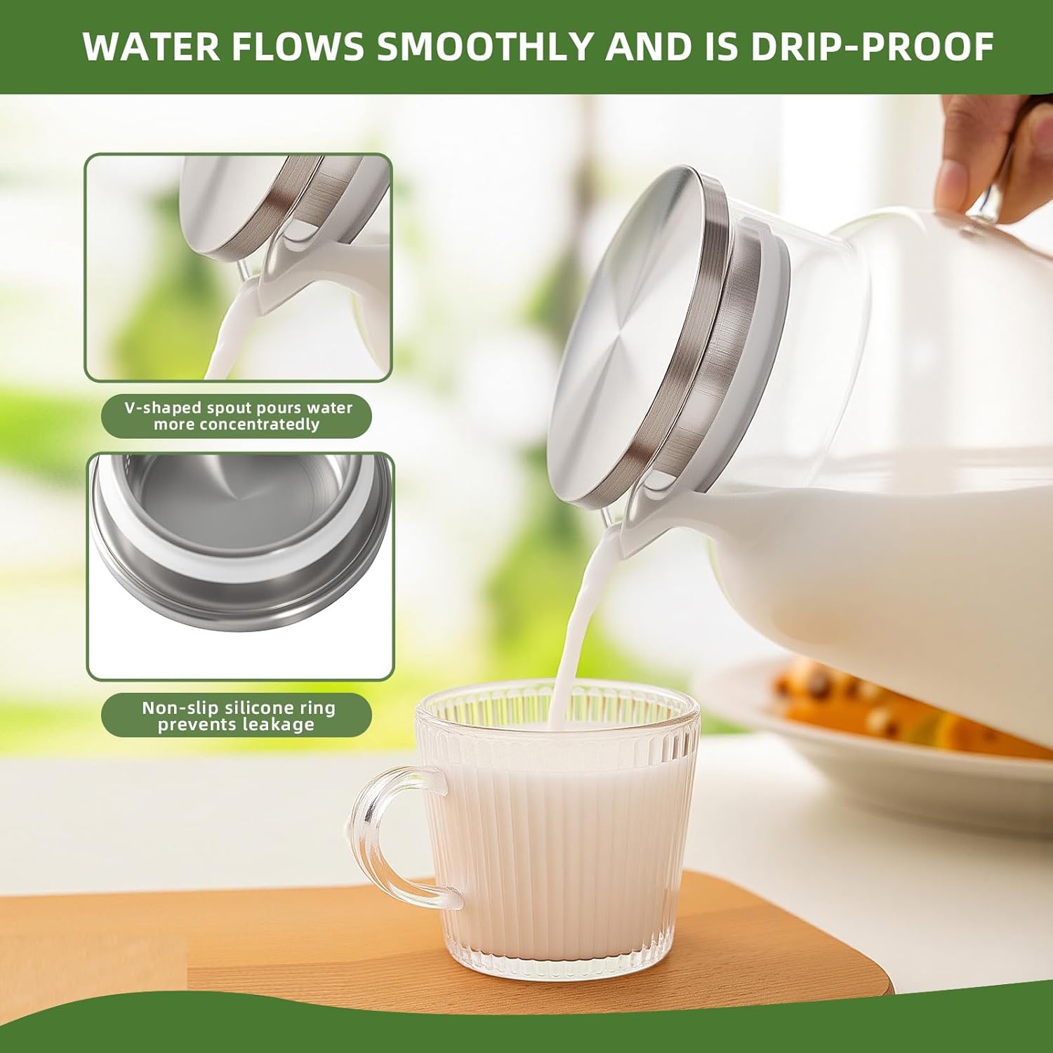 - [Safe and Sturdy Glass Material]: Our pitcher is crafted from premium high-grade borosilicate glass, ensuring it's 100% free of lead, heavy metals, and toxins. With a sturdy 4mm thickness, our pitchers are built to last, ensuring enduring durability.