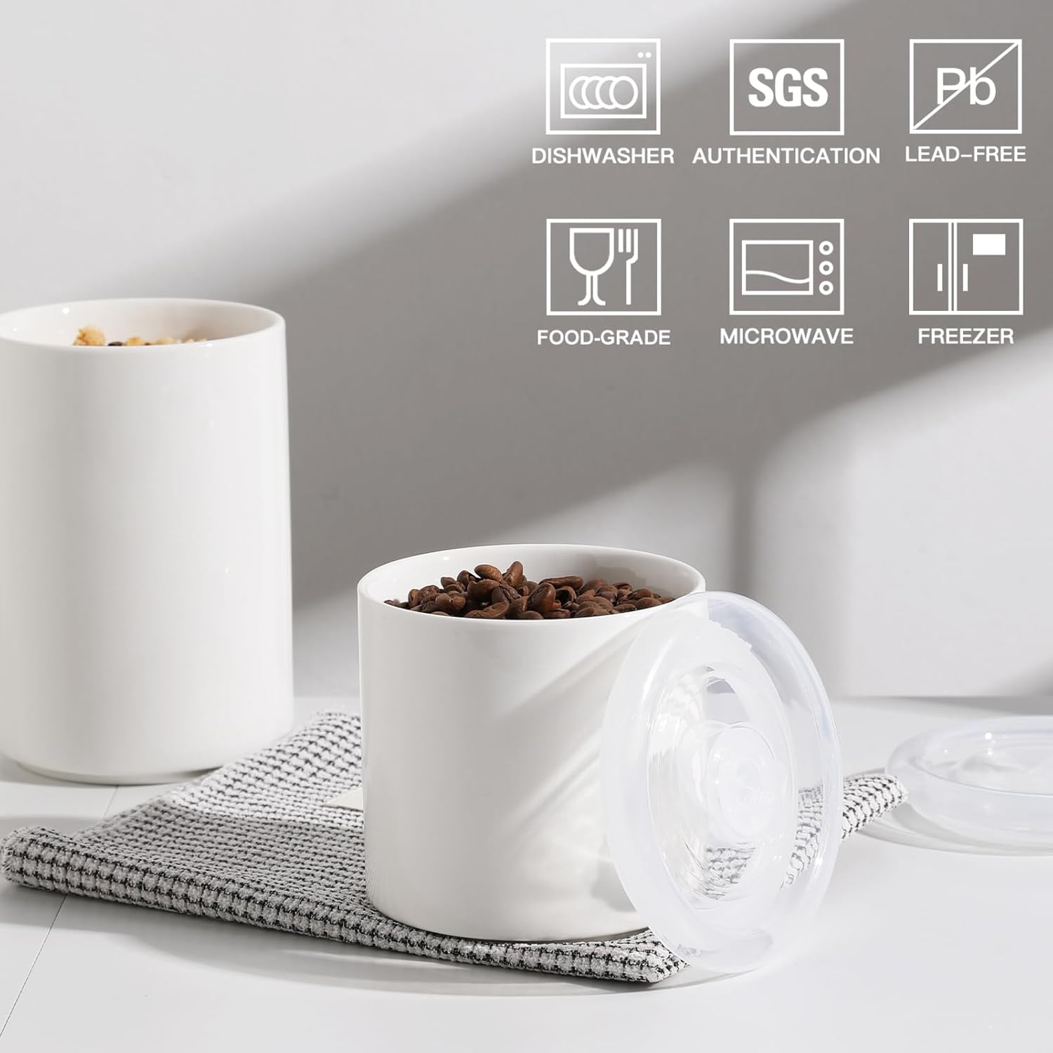 Sweejar Ceramic Food Storage Jar, Salt Container with Airtight Plastic Lid & Date Tracker, 28 Oz Kitchen Canisters for Flour, Rice, Sugar, Coffee, Spices, Pantry Organization (White)