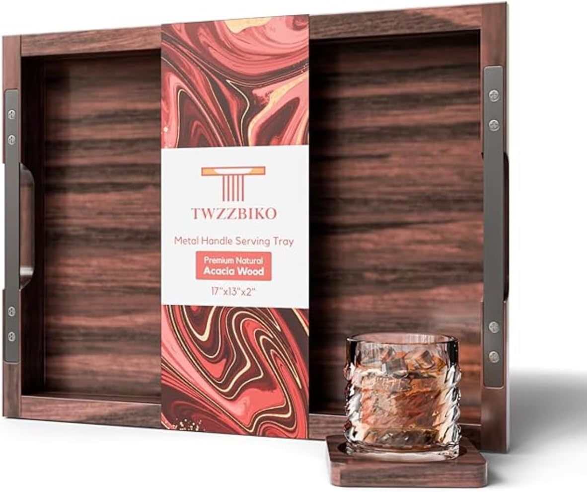 - FUNCTIONAL & CONVENIENT: Serve with ease without awkward balancing thanks to snack tray’s durable wood finish and strong iron handles that help prevent spills. Thick yet lightweight for easy, long-lasting use, making every serving safe and special.