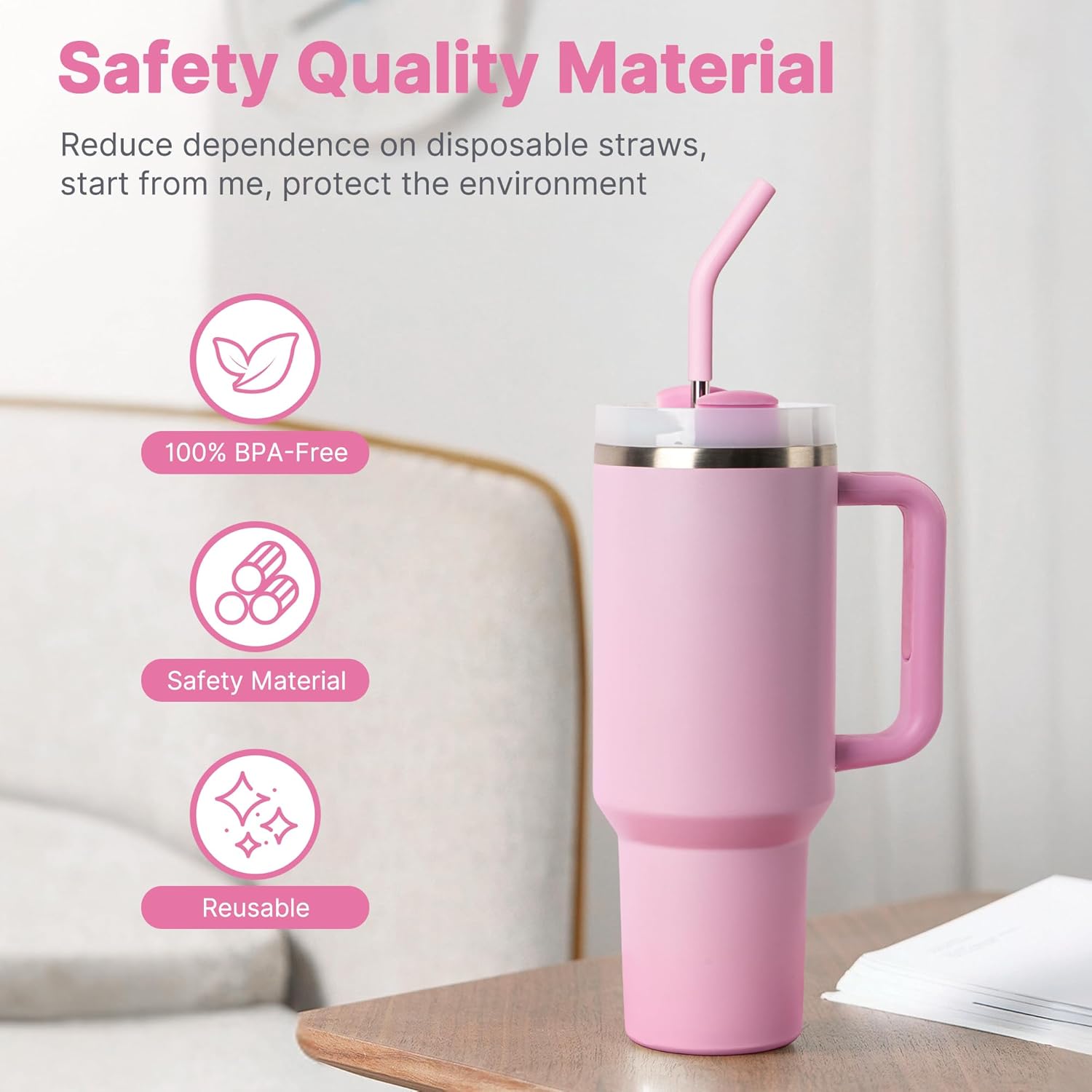 - Silicone Tips: Equipped with food-grade silicone straw tip, it is soft and lightweight and fits your lips, avoiding direct contact with hard metals and effectively protecting your teeth.