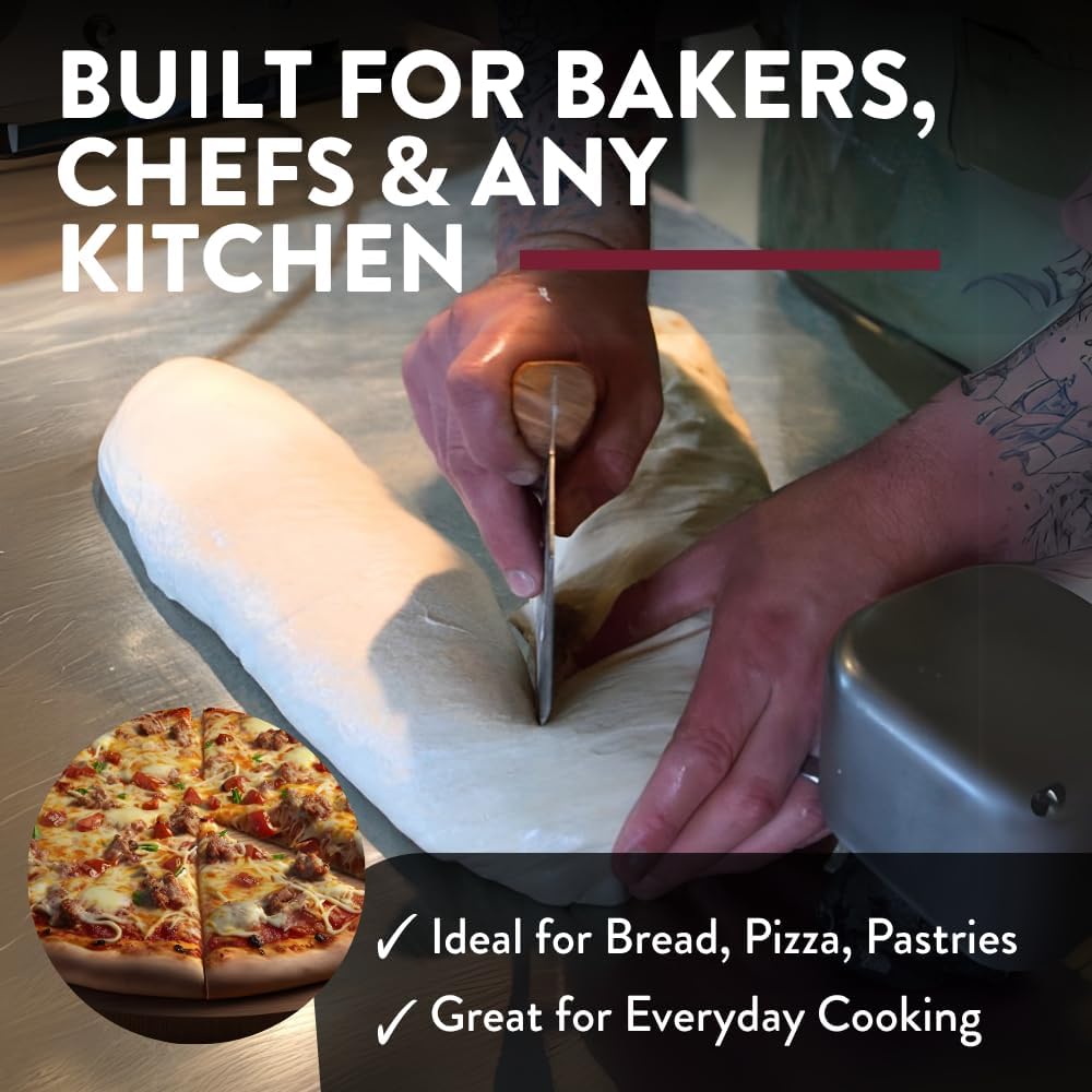 - Contoured Maple Handle for Comfort: Crafted from Oregon Big Leaf Maple Burl, the handle is contoured for a naturally secure and comfortable grip. It balances style and functionality, making it a premium upgrade among dough scrapers, baking tools, and kitchen prep utensils.