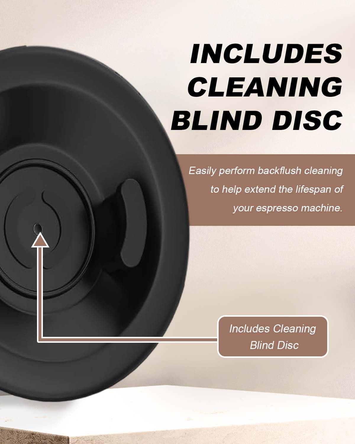 - Includes 1 Perforated Blind Disk for Easy Cleaning:Comes with 1 bonus perforated blind disk to help flush out coffee oils and residue, keeping your filter basket clean and performance-ready.