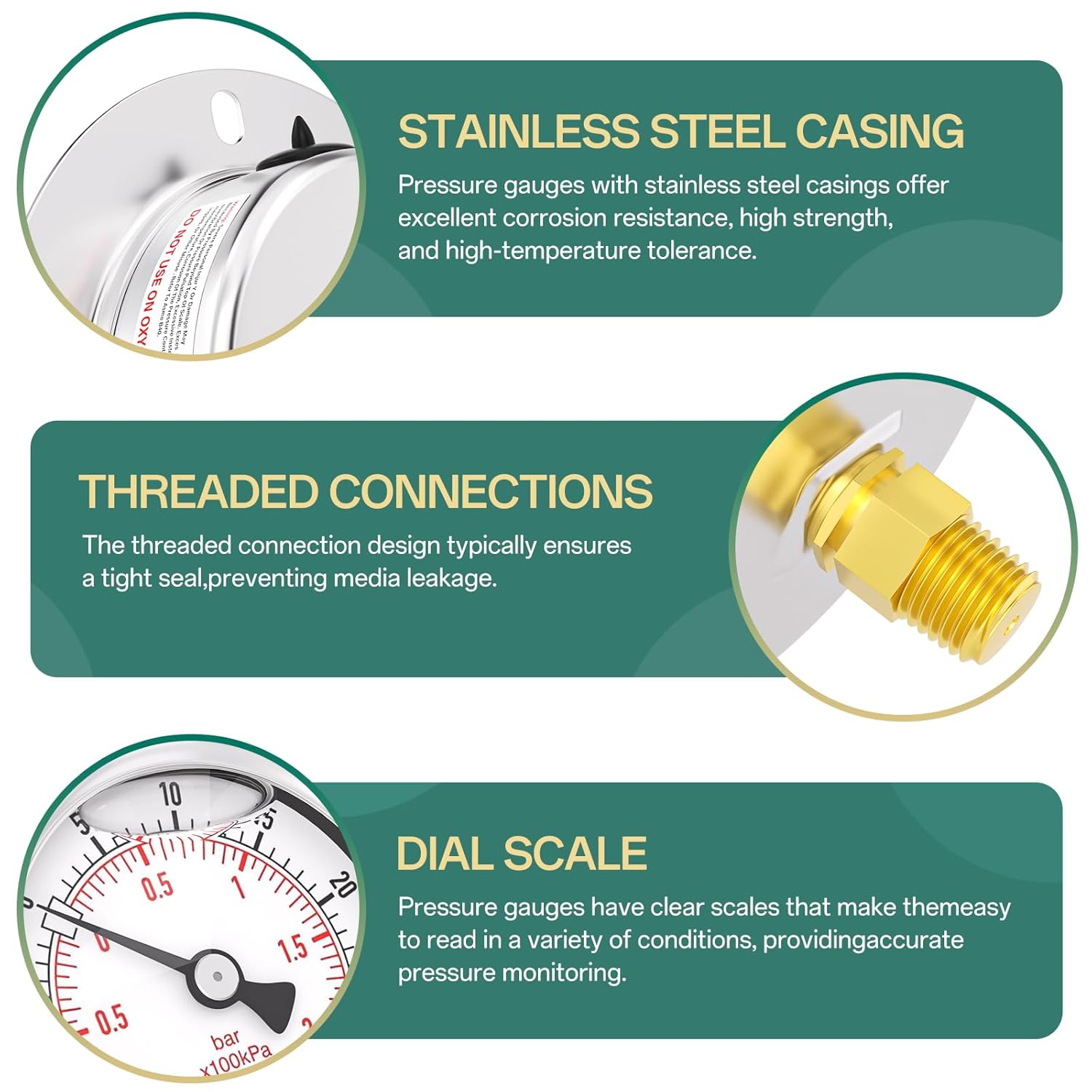 - [SIZE] 2.5" dial size, 1/4" MNPT Back Mount