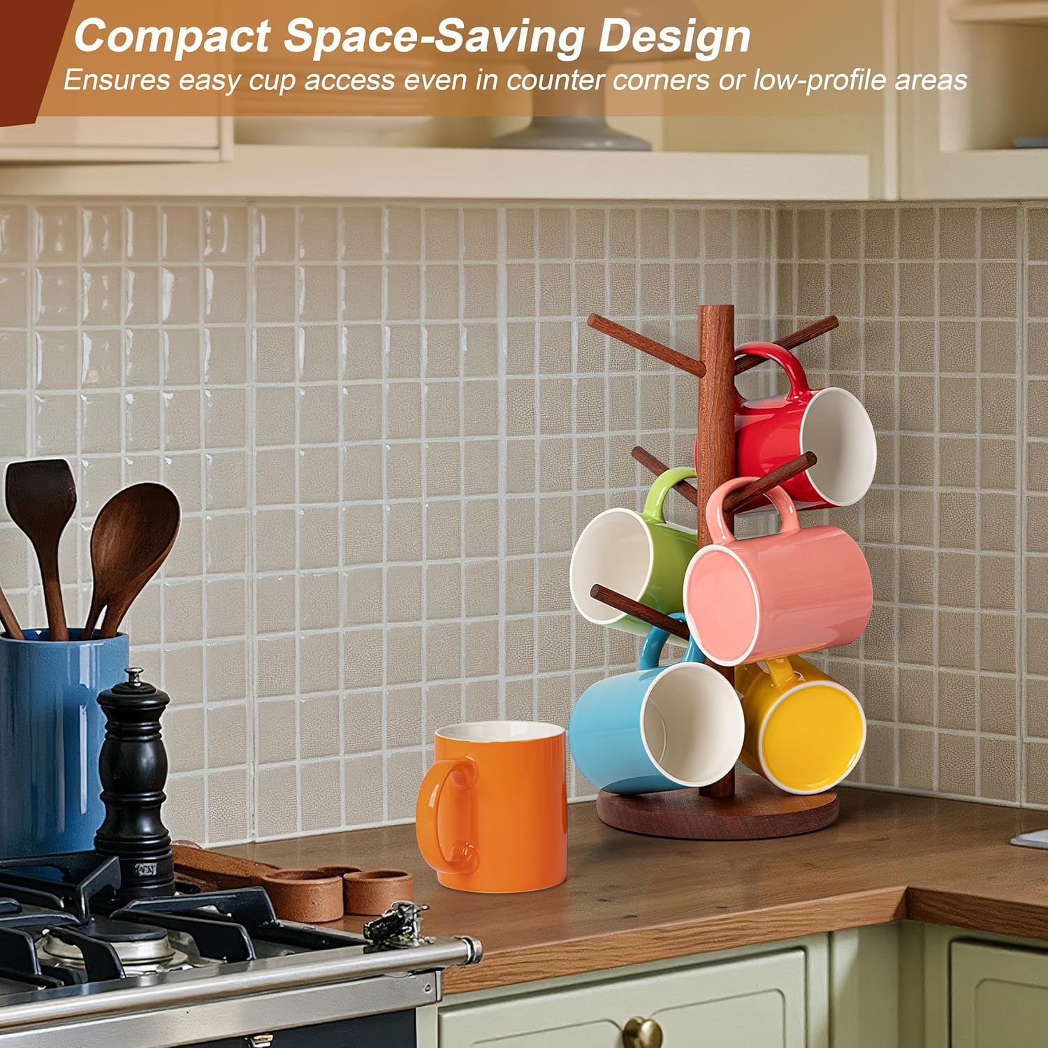 - 6-Hook Mug Tree: Practical mug organizer features six evenly spaced hooks to securely hold cups and mugs (up to 6). Its compact design saves space while keeping your drinkware organized