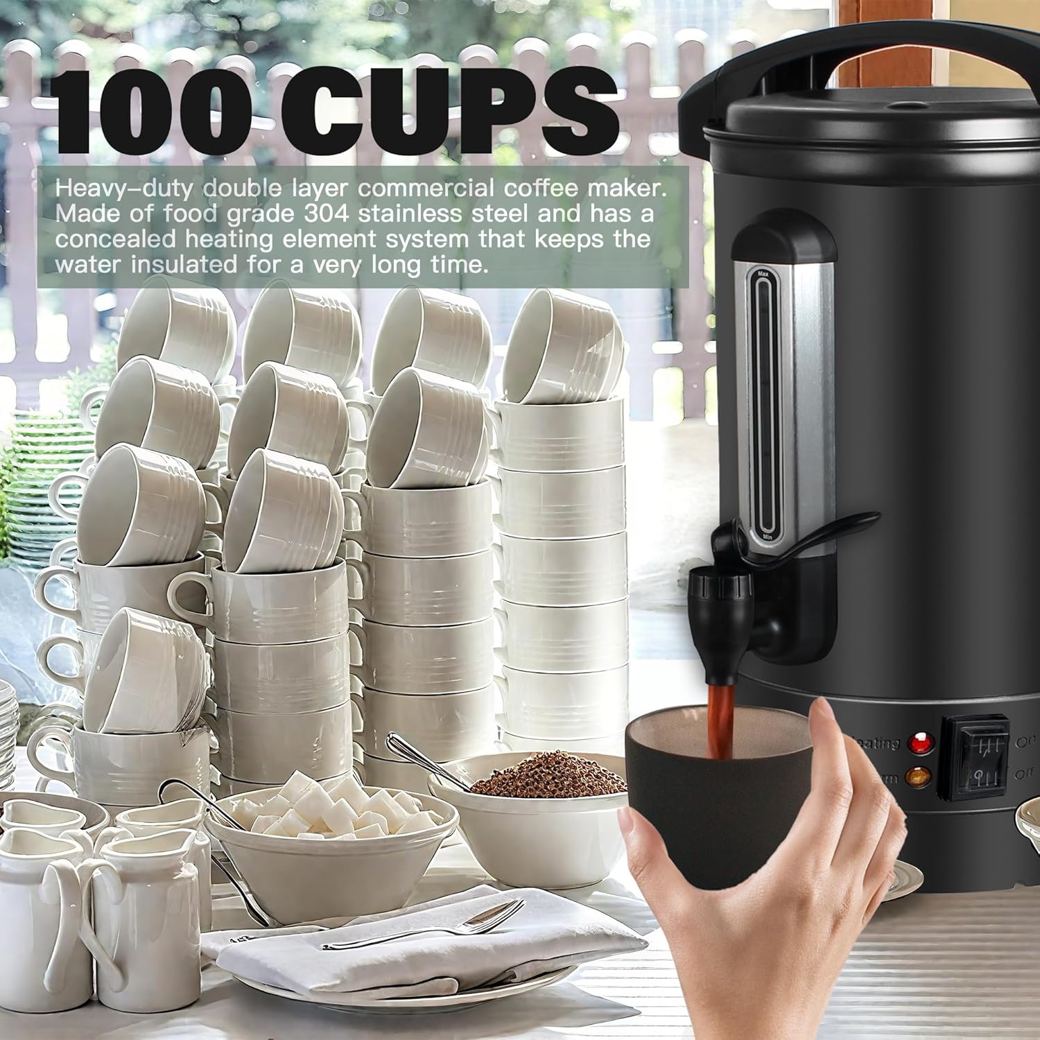 Coffee Maker 100 Cup Commercial Coffee Urn,Hot water/beverage Machine and Drink Dispenser-Premium 304 Double-Wall Stainless Steel Electric Percolator Coffee pot,Keep Warm for Hours,Matte Black