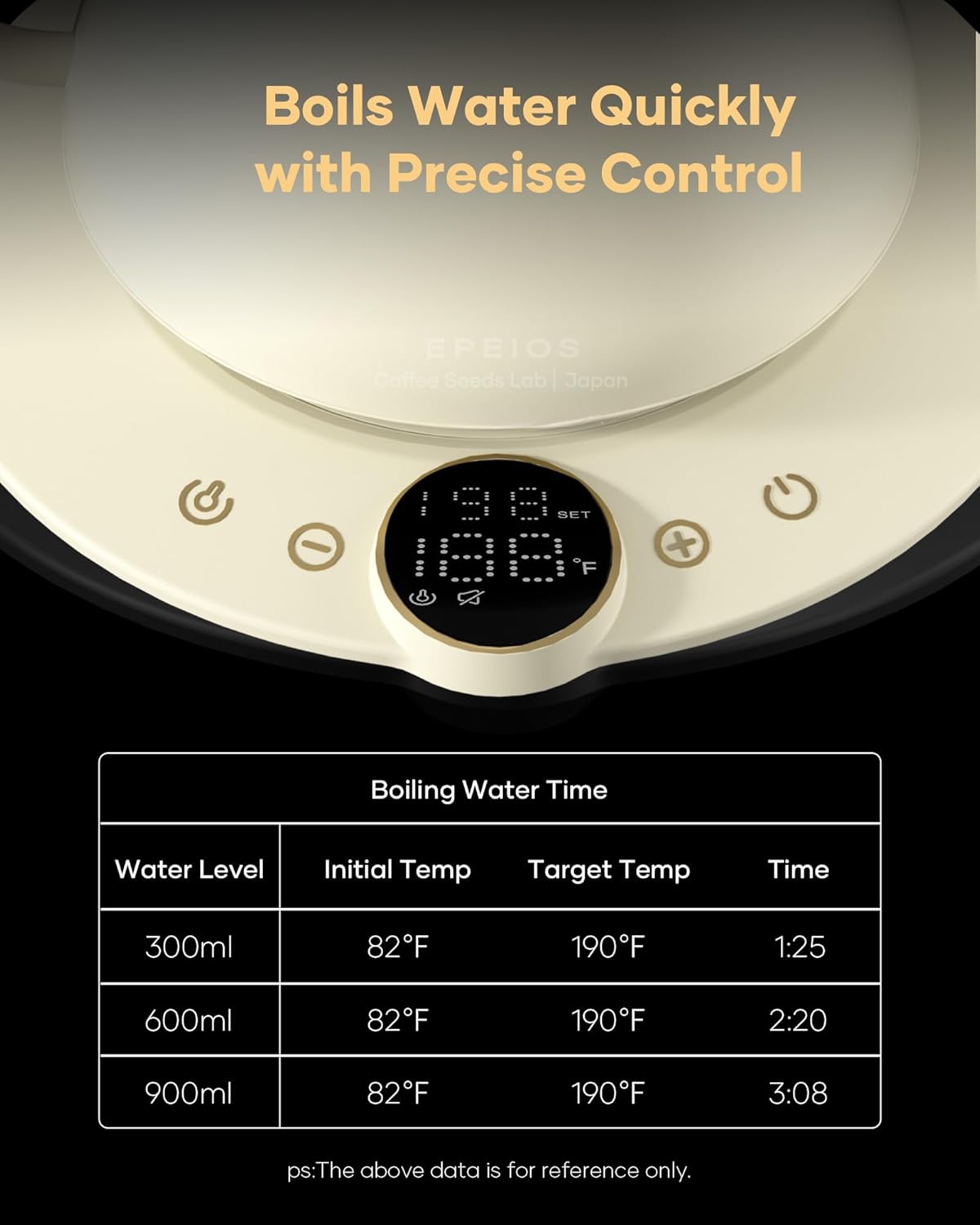 - Precision Heating & Pour Control: The intelligent base maintains your set temperature within ±1℉ for optimal extraction. The S-shaped spout delivers a steady, controlled pour - ensuring consistency in every cup.
