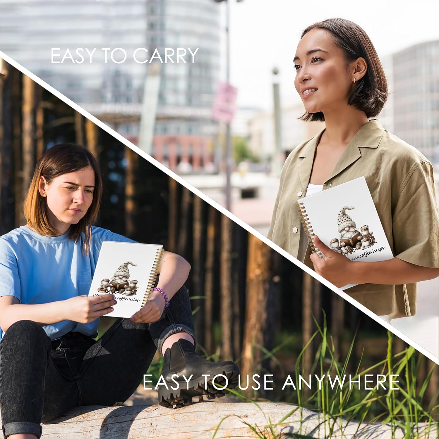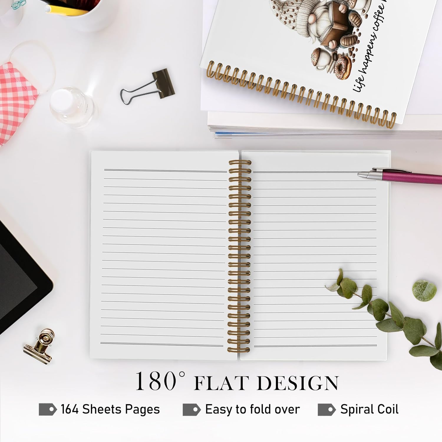 Funny Coffee Gnomes Spiral Notebook, Coffee Lovers Gifts Journal Notebook, Gnome Gifts Notebooks for School Work, Life Happens Cafe Helps Office Supplies Gifts for Women Men, 5.5x8.3 Inch