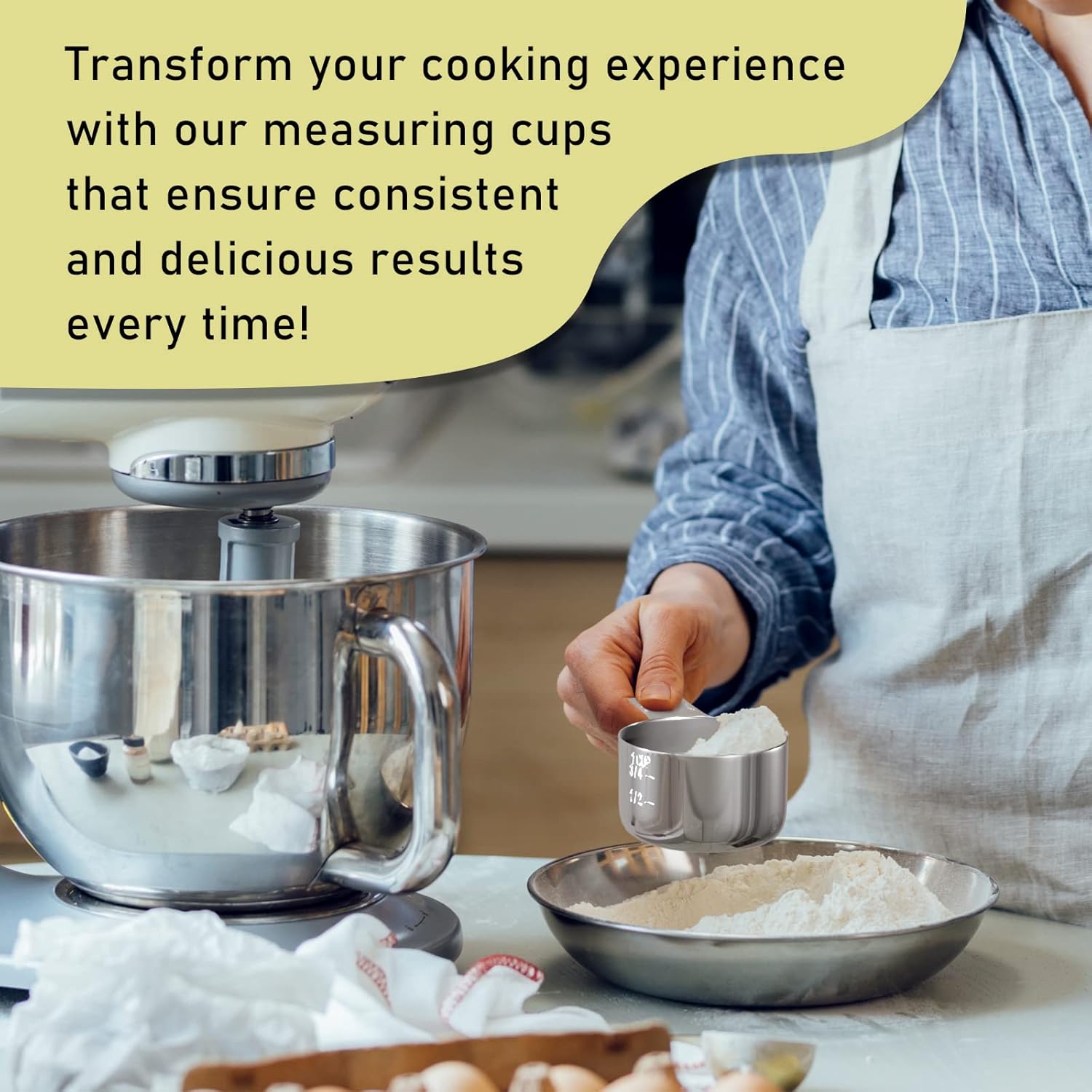 4PCS 1Cup (240ml, 8oz) Single Measuring Cup, Stainless Steel Measure Scoop, Metric and US Measurement, Dishwasher Safe