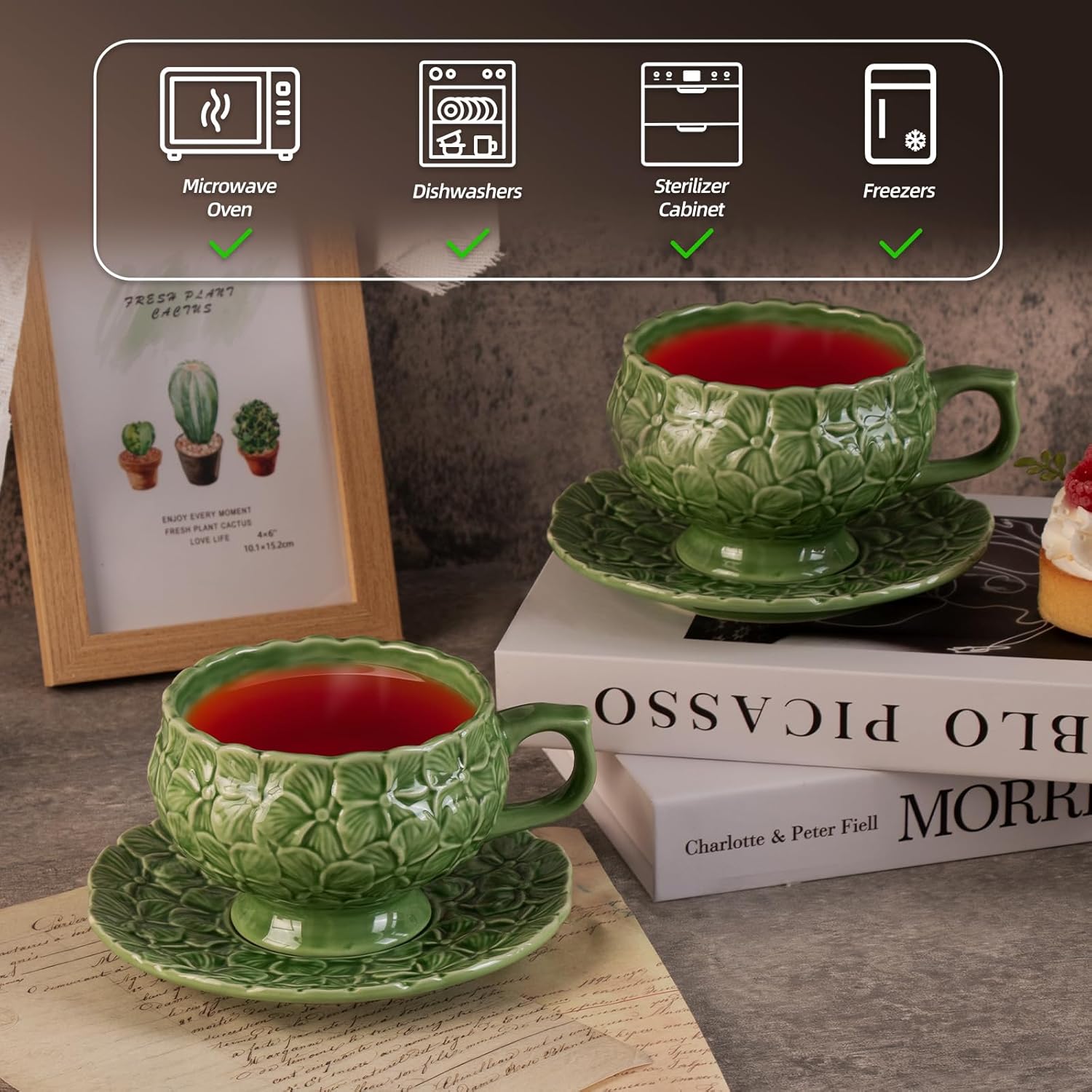 - High-Quality Porcelain: Made from durable porcelain, these tea cups and saucers are designed to withstand daily use while providing excellent heat retention, ensuring your beverages stay warm longer.