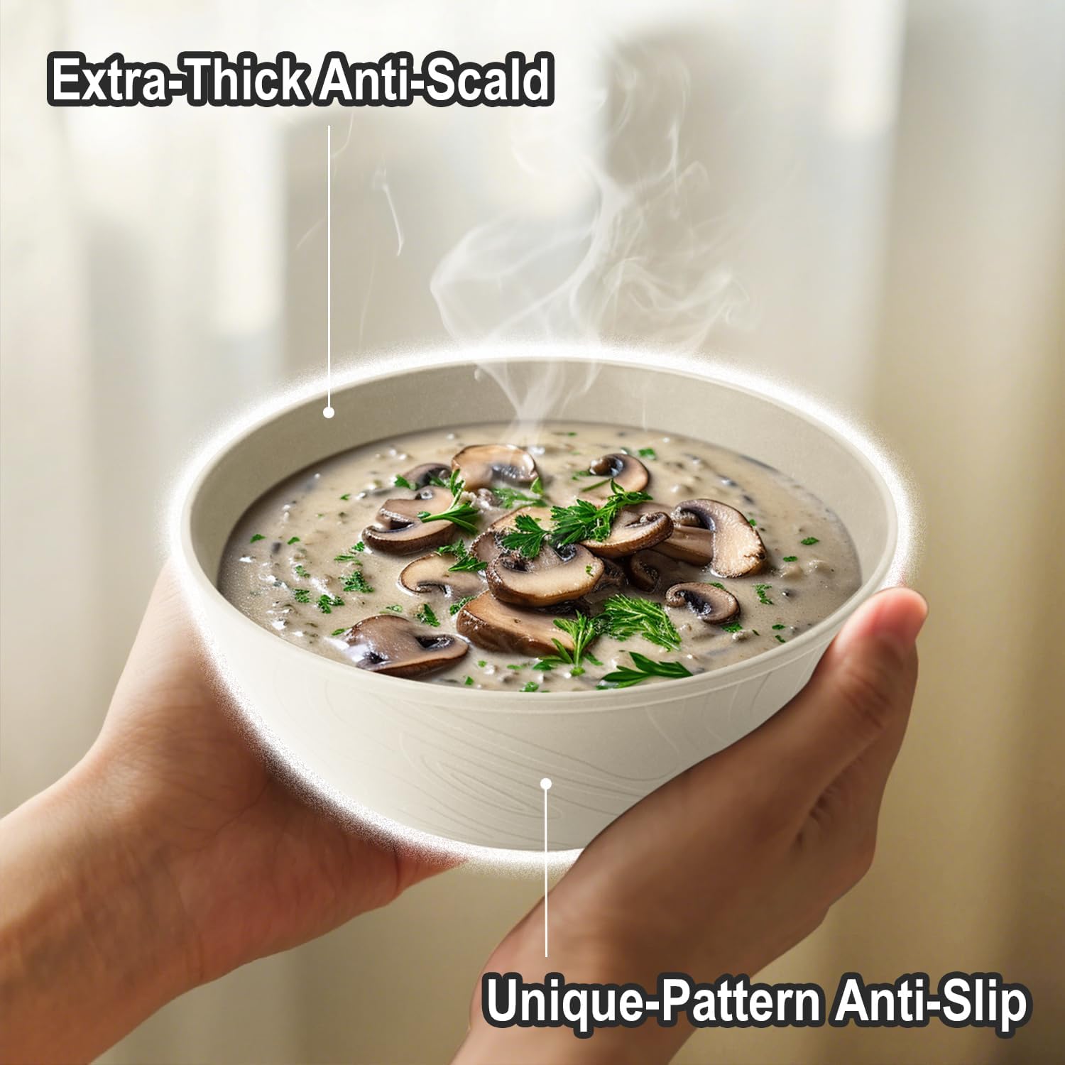 Beige Wheat Straw Bowls for Cereal and Salad,Alternative Plastic Bowls Set of 6,40oz Unbreakable Soup Bowls suitable for Kitchen,Party,Camping and R.V.