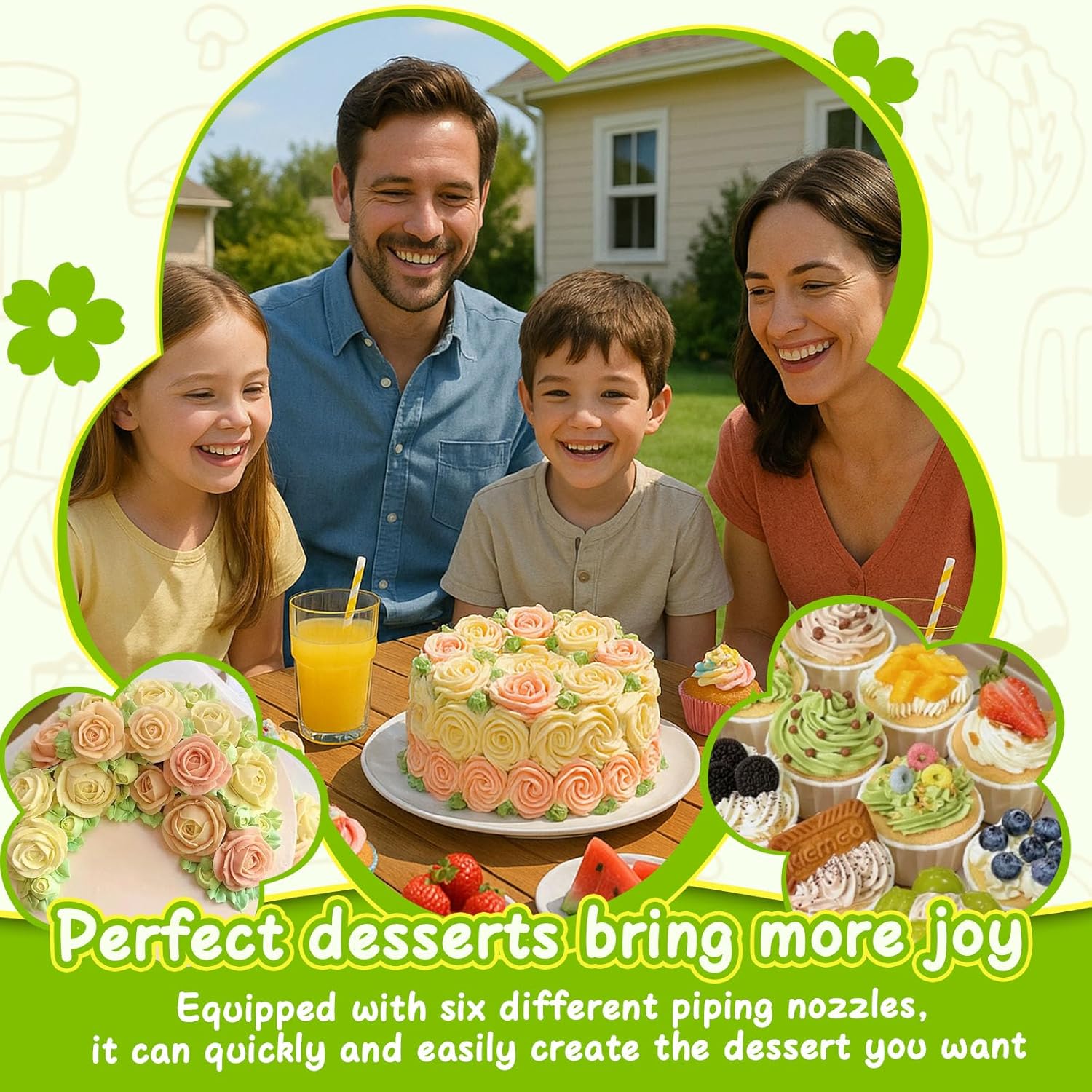 - Make Multiple Patterns: Our icing gun has 6 different types of replaceable piping tips, you can easily make more patterns on cakes or biscuits, making your desserts more delicious and beautiful