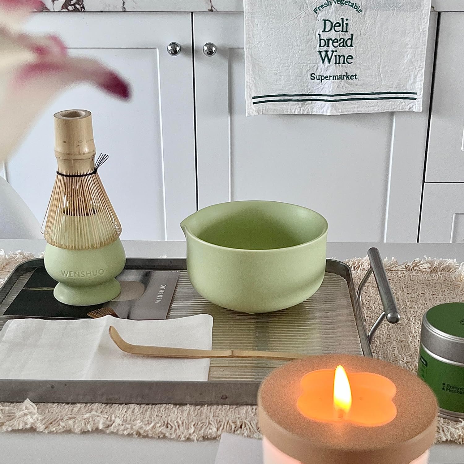 Matcha Kit - Premium Matcha Whisk Set with Traditional Bamboo Tools, Ideal Matcha Tea Set for Home (Mint Green)