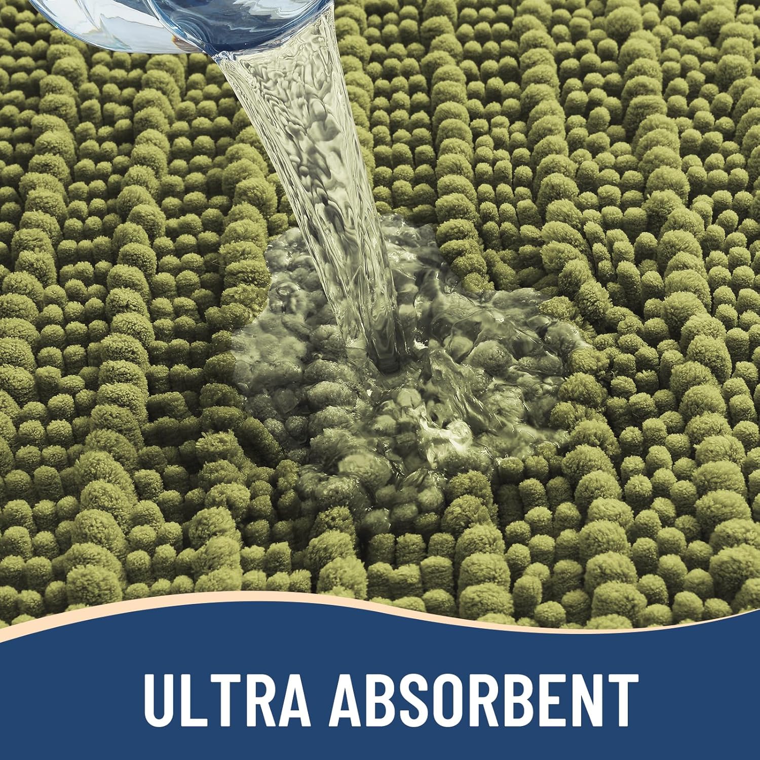 Arotive Luxury Chenille Bathroom Rug Mat, Extra Soft Thick Absorbent Shaggy Bath Rugs, Non-Slip Machine Wash Dry, Plush Bath Mats for Bathroom, Shower and Tub, 24x16, Willow Green