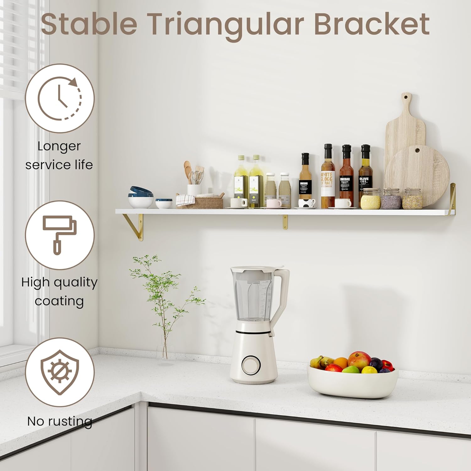 Dreamland 8 inch Deep Floating Shelves for Wall, 55 inch Long White Wall Mounted Shelves Set of 2, Wide Ledge Shelf with Gold Sturdy Metal Brackets for Living Room, Bathroom, Bedroom and Kitchen