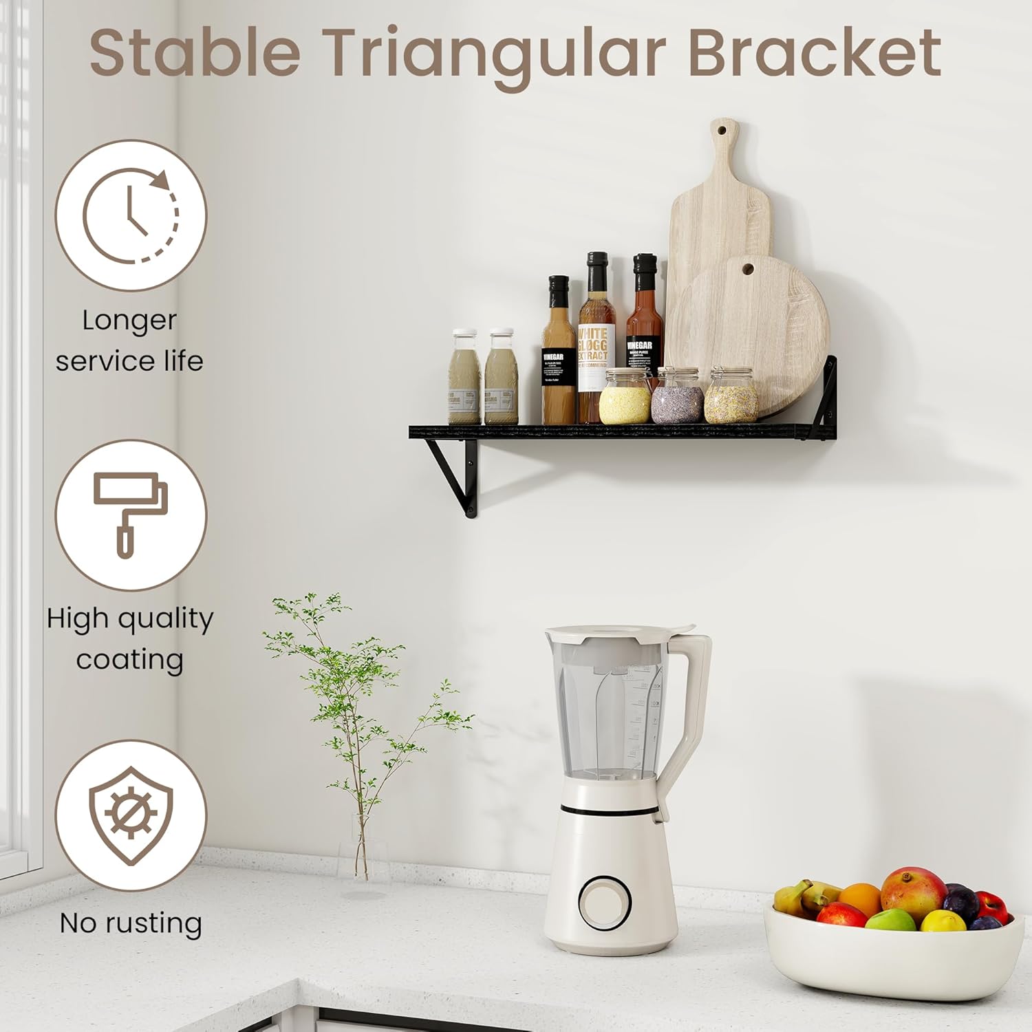 - Wide Application: These floating shelves are perfect for any room in your home. Use them in the living room to display artwork, in the kitchen for spices and utensils, in the bathroom for toiletries, or in the bedroom for books and accessories. Their versatility ensures they meet your storage and decor needs wherever you place them.