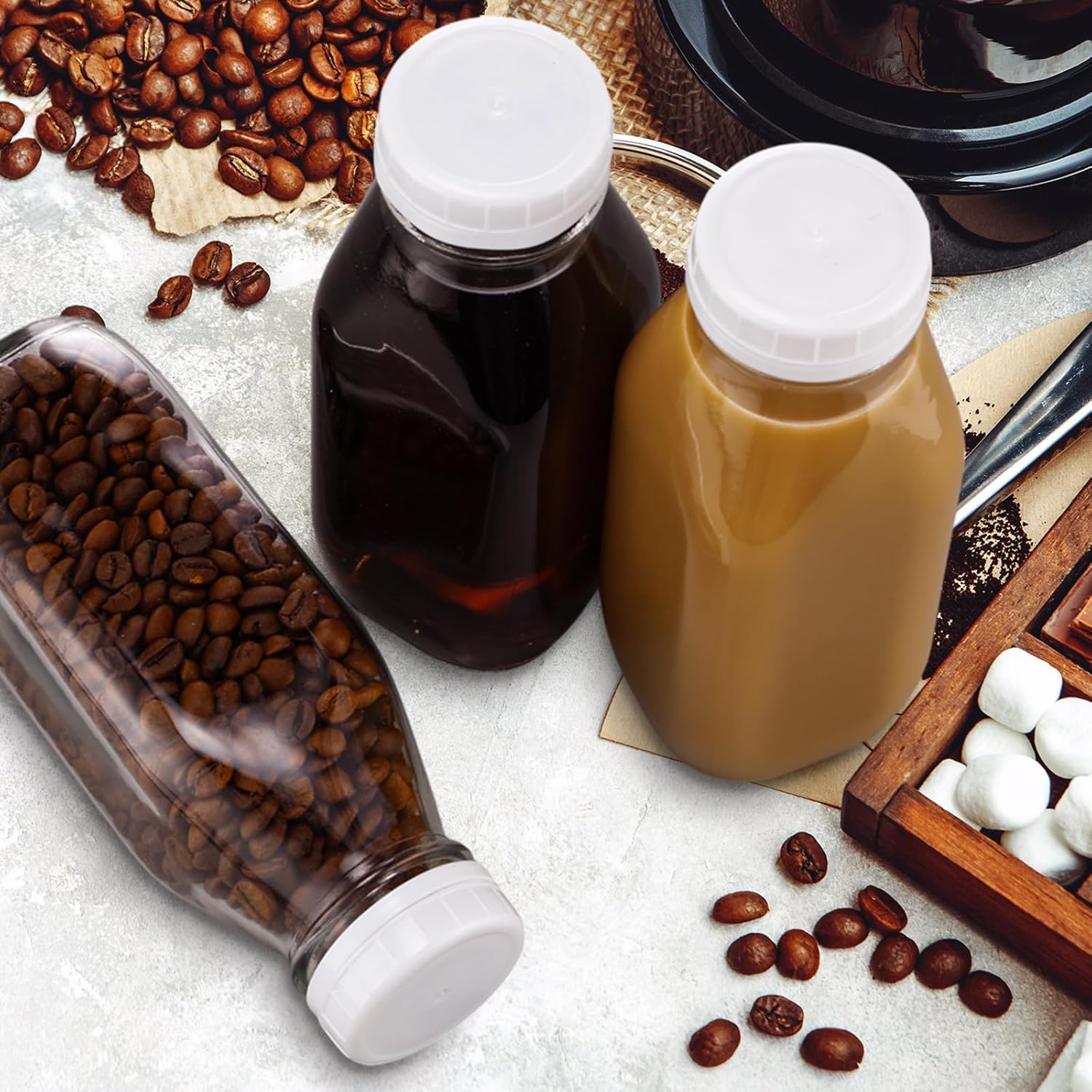 - Good Sealing: the glass juice bottle with cap comes with a custom threaded cap; The cap is made of plastic, durable and can be easily tightened; The strong sealing screw cap is reusable, has good sealing, and is leakproof and spill proof